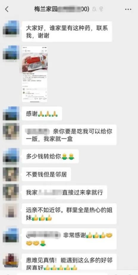 梅兰家园社区居民群互助药品。