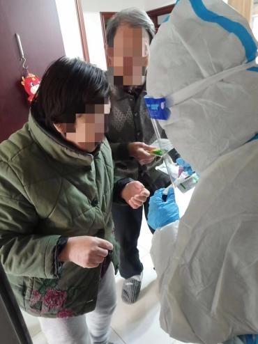 “我们老两口发烧了,还有点轻微咳嗽,家里也没有抗原,不知道怎么办了……”12月17日,家住望泉家园社区的两位老人给社区居委会打来求助电话,党支部书记周蕾详细询问了老人基本情况,得知两位老人均已年过八十,患多种基础疾病,儿子生病没有在身边陪伴。周蕾迅速与老人家属取得联系,告知老人目前身体情况,并快速安排工作人员做好防护,为老人送去抗原试剂盒。“慢慢转进去,感觉不适应了再停停。对,就这样。”工作人员现场耐心指导两位老人使用抗原试剂盒,经检测,两位老人抗原检测结果均为阳性。工作人员随即对老人进行了心理疏导和用药指导,讲解了相关注意事项,有效缓解了老人的紧张情绪。“有需要您就给我们打电话,我们随时都在。”工作人员表示。目前,望泉家园社区已落实台账,将对两位老人开展“一对一”每日问询工作。