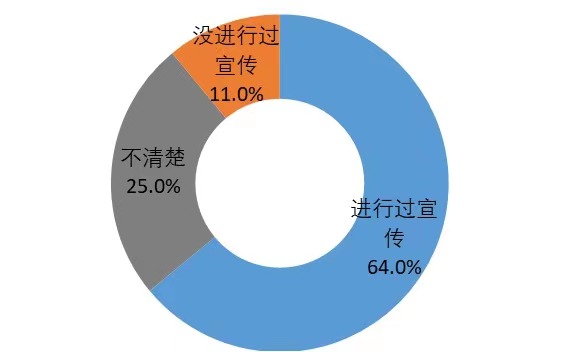 受访居民认为,消防安全宣传尚有提升空间。64%的受访居民表示所居住社区开展过消防安全宣传,11%的居民表示未开展过消防宣传,25%的居民表示不清楚。但仅有不足20%的居民熟悉小区消防设施分布。