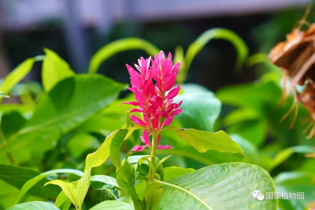 每逢秋冬季,在宽大而旺盛的嫩绿色叶丛中,一簇簇娇艳似火的花序总会格外亮眼,层层叠叠引人注目,它就是赤苞花。