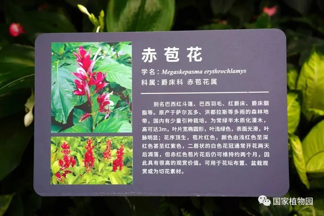 赤苞花株形雅致,原产于中南美洲一带的热带雨林区,在国内是较罕见的园林观赏花卉,观赏价值较高。可广泛应用于公园、休闲绿地、住宅小区等的环境美化。