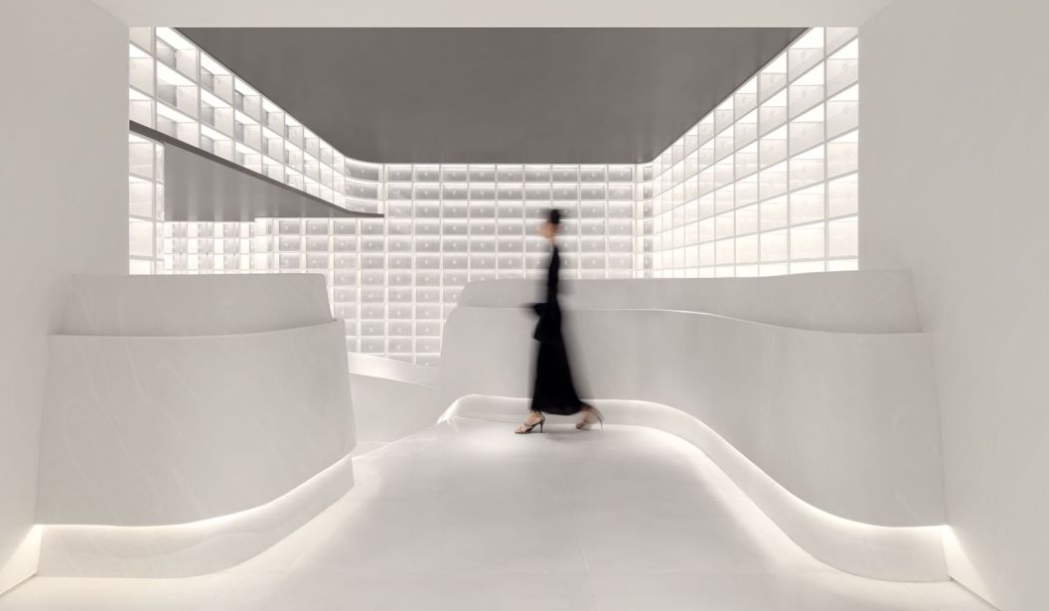 在空间布局上,「花西子·西湖隐园」借鉴传统园林中的 “内庭外院”,演化为“上庭下院”。明亮热闹的一层,彩妆、香氛、试妆共绽,是为下院;隐秘安静的二层,艺术藏品、沙龙、定制化体验静置,是为上庭。“我们希望在西湖边,这个兼具繁华与自然的地方,为用户提供一处‘大隐隐于市’的东方花园。”花西子空间创新研究中心负责人道:“中国讲究含蓄之美,我们并不希望只是简单地把园林元素搬运到店里,而是希望做到‘形隐神现’,在空间中融入中国园林里的现代隐士哲学,让顾客在游园的时候,去探索、去感悟,去发现自我。”