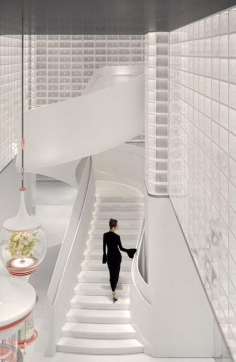 俯仰皆是的艺术氛围,让中国美术学院的杭间教授,赞称“人文艺术、时尚审美与商业空间结合的典范”、“首个艺术馆式美妆零售空间”。
