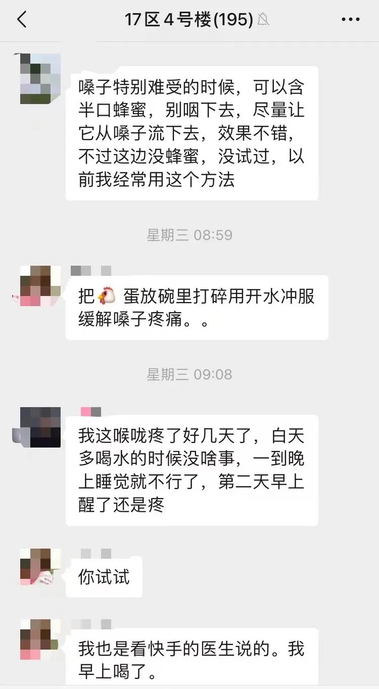 大家还在微信群里积极分享最新通知、“抗阳”经验和疾病预防知识,鼓励邻居乐观面对,科学居家治疗,倡导勤洗手、常通风、讲卫生等良好习惯,保护好自己和家人的健康安全,当好自己健康第一责任人。一次次分享、一声声鼓励,夯实着共克时艰的底气,让邻里情持续升温。