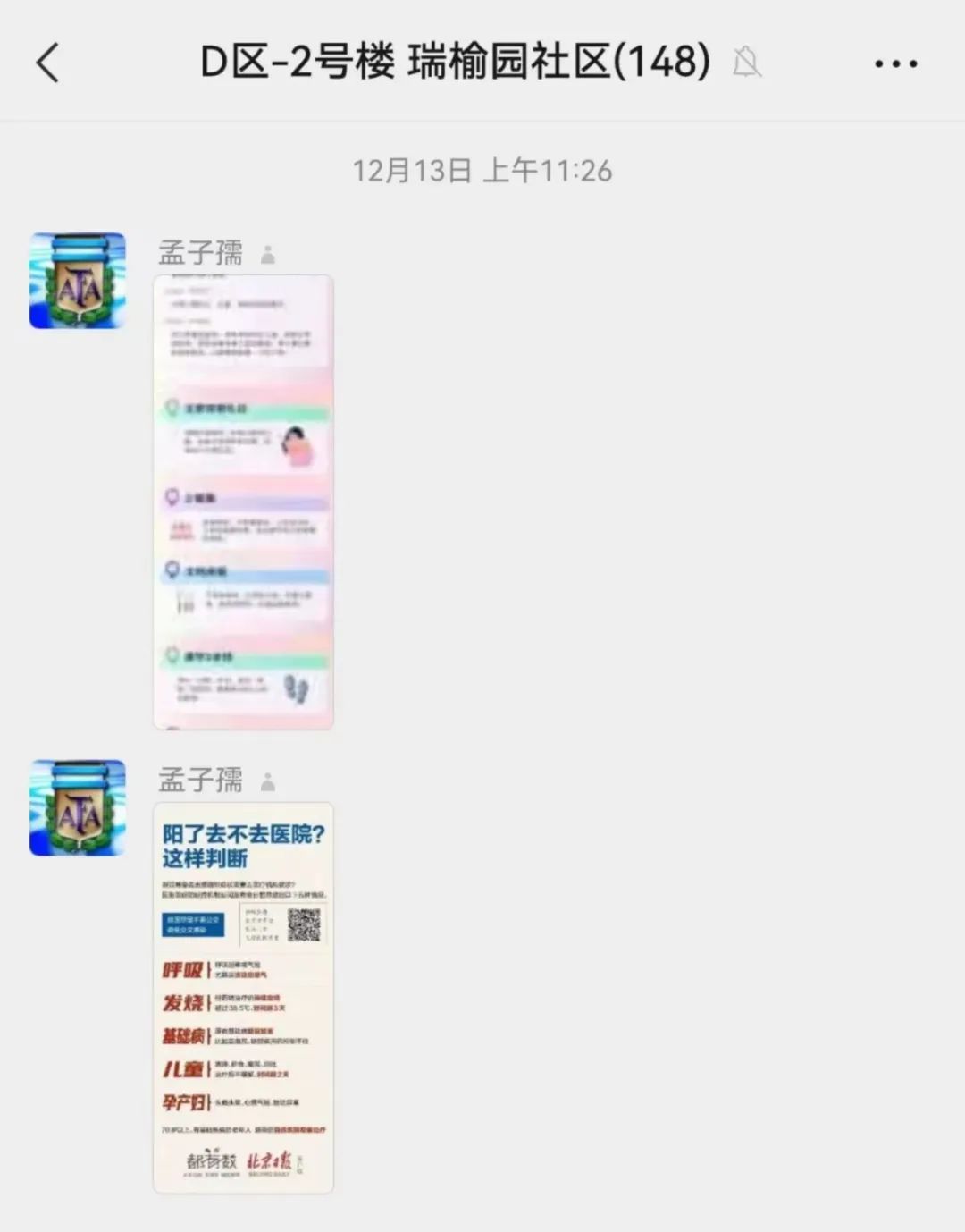 ▲社区工作人员在群内及时发布各项科普知识及通知