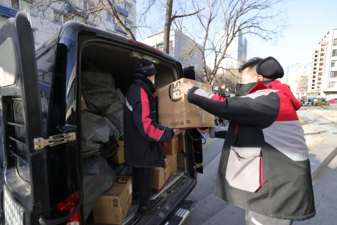 “我尽量做好防护,能多送一些快递就尽量多送一些。”室外气温零下10℃,整理好快递、消杀装车,快递小哥周树兵穿好厚重的防寒衣物,检查好车上的消毒剂、备用口罩等防疫用品后准备出发。