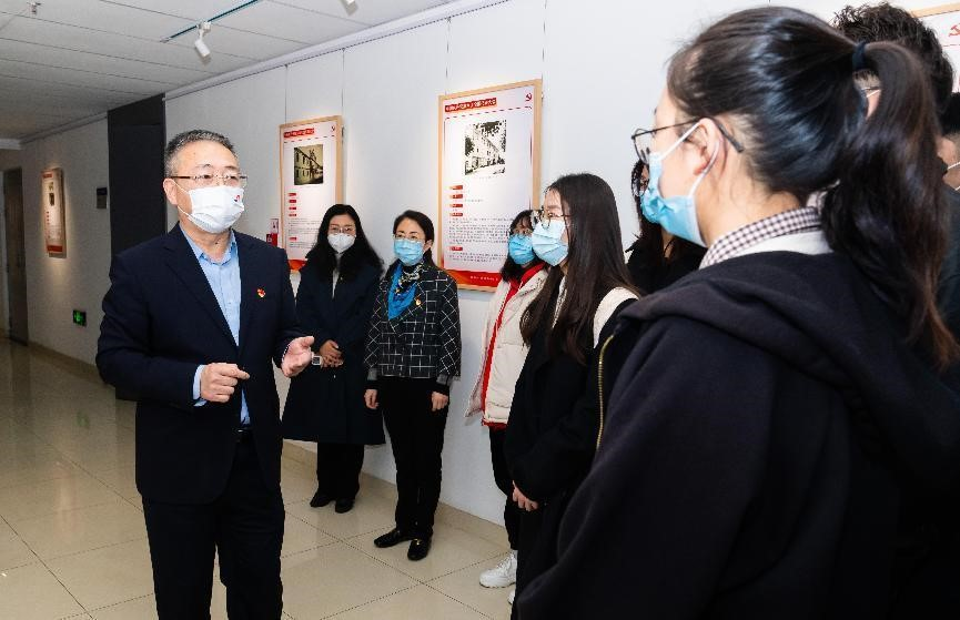 首都师范大学党委书记孟繁华为师生讲解“伟大历程——中国共产党历次全国代表大会图文展”