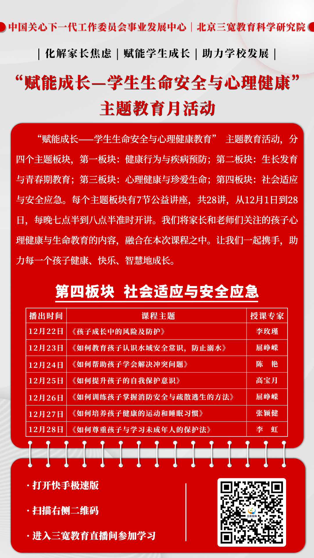 下载【快手极速版】APP,用快手极速版APP扫描海报上的二维码,进入【三宽教育】直播间参加学习。