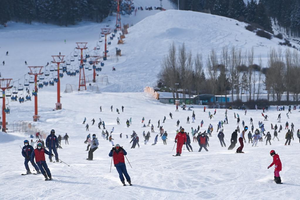12月5日,滑雪爱好者在新疆丝绸之路国际度假区滑雪场滑雪。新华社记者 丁磊 摄