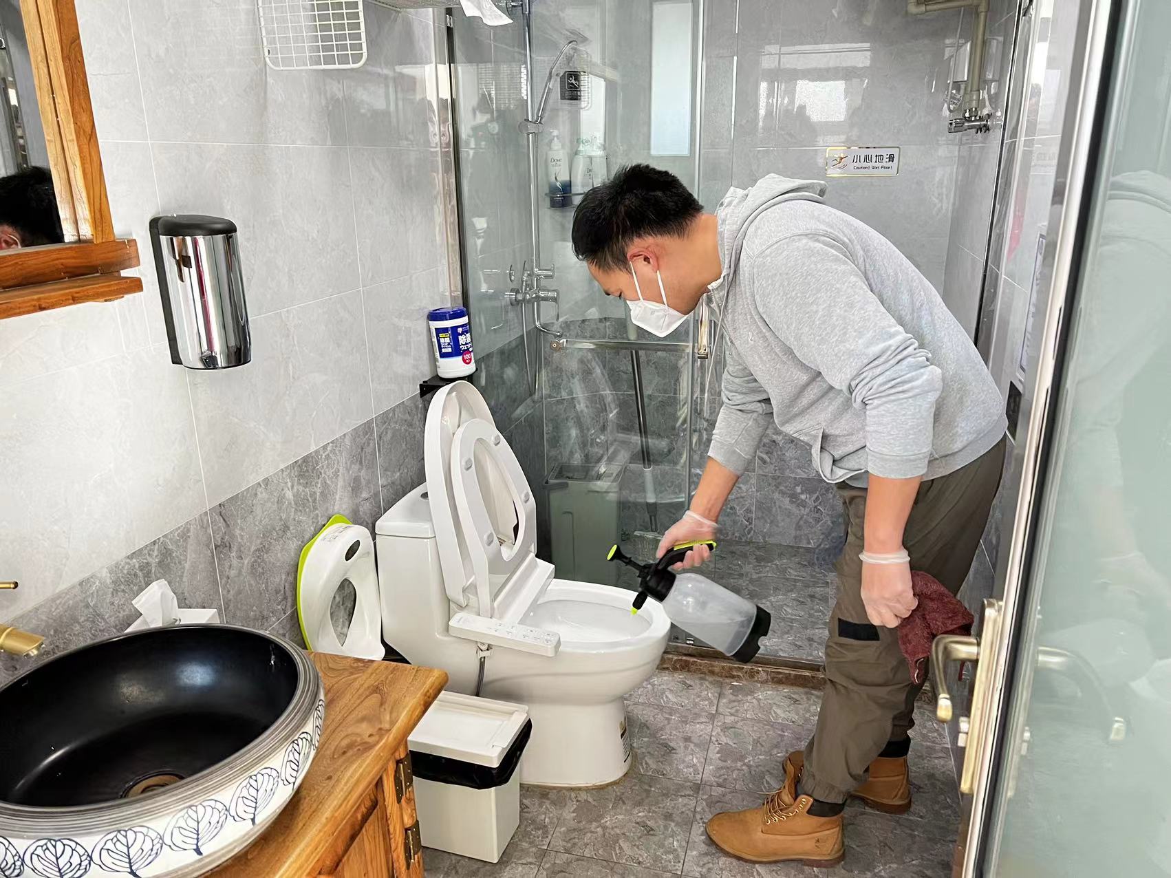 为了保障市民的安全,民宿正常经营后,对所有的区域划分为公共区域和客房区域两个重点区域,并进行清洁。“我们要求所有的保洁人员对公共区进行每天不低于5次的消毒,每次消杀的间隔时间不超过3个小时,尤其是对门把手、桌面、扶手以及与客人接触的部位,进行严格消杀,对客房的卫生间,也进行严格消杀。”后院精品民宿管家成晨说,公共区和客房区的保洁用具做到分区专区专用,避免交叉感染,尽自己最大的努力,为客人提供一个舒适健康的居住环境。