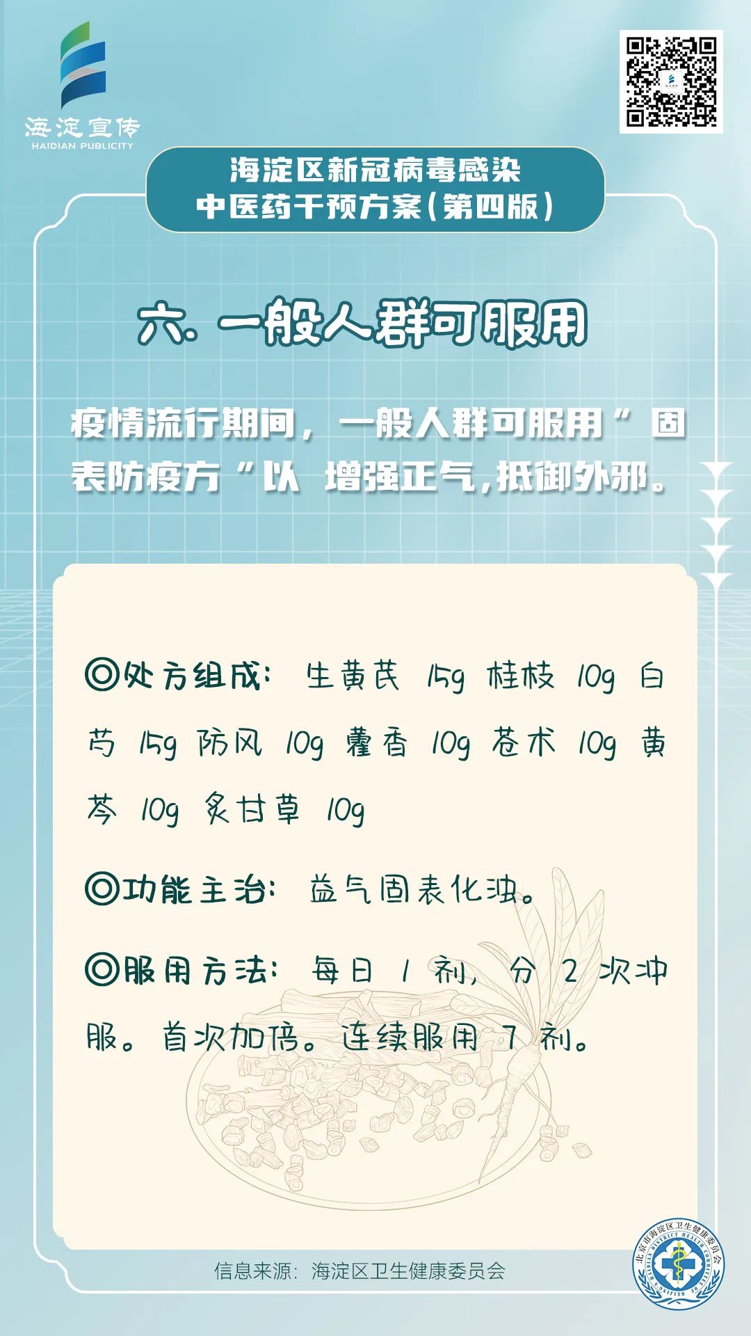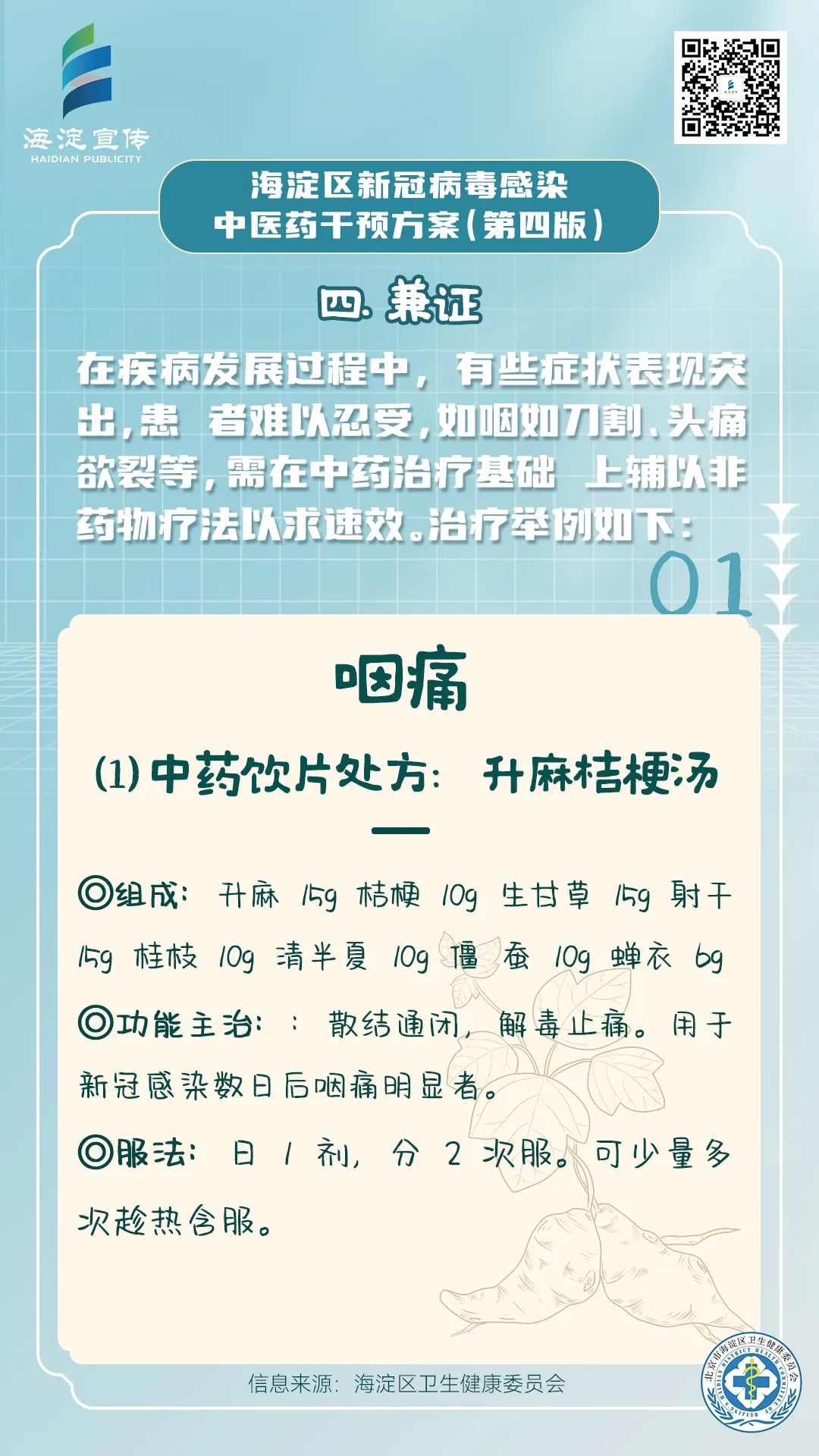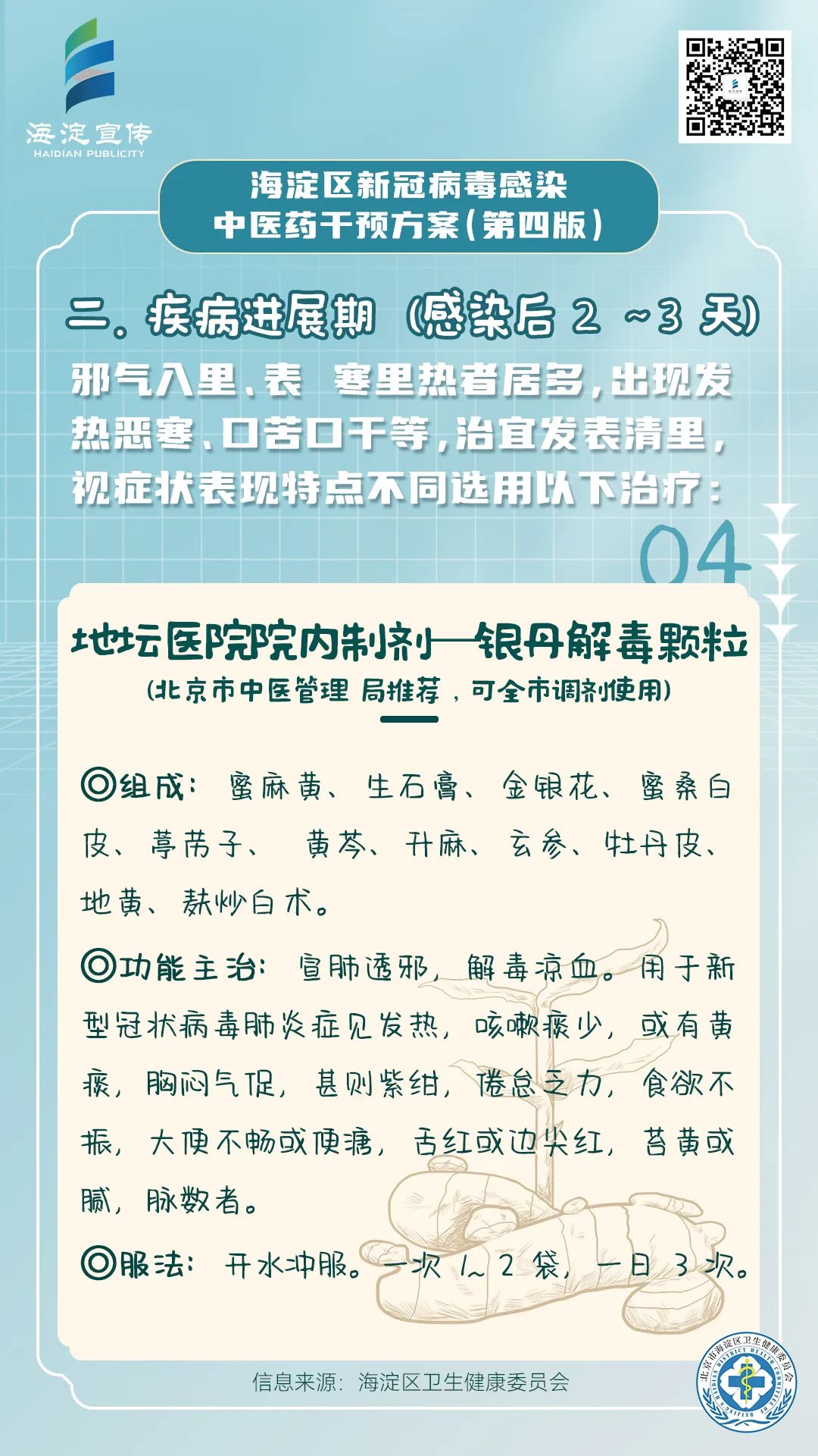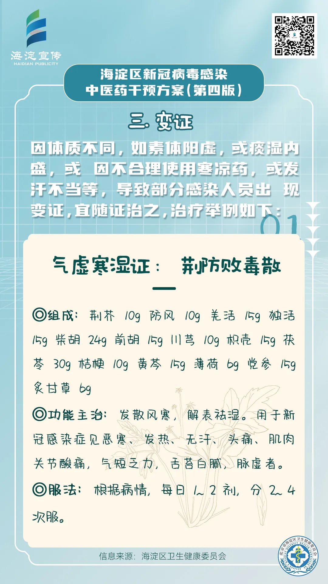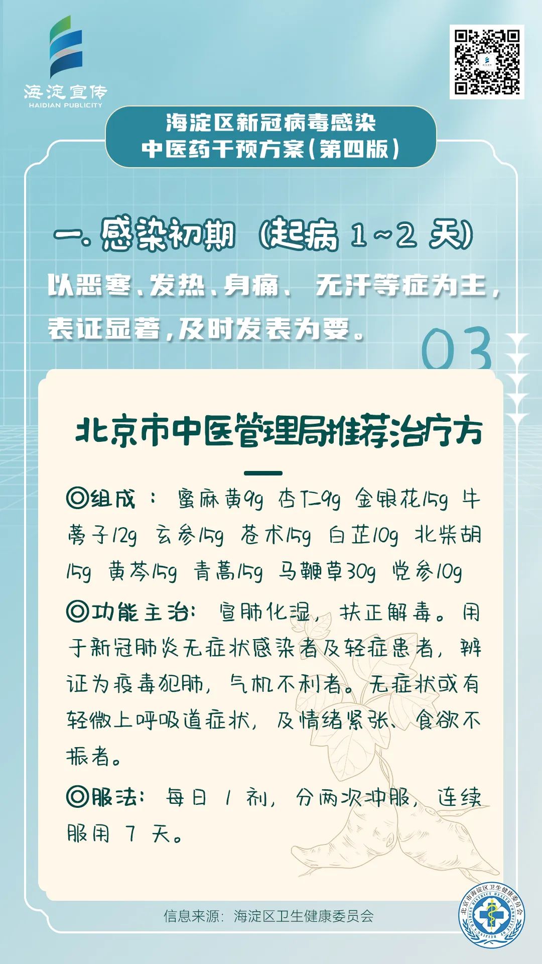 《海淀区新冠病毒感染中医药干预方案(第四版)》供海淀区各医疗机构开展新冠病毒感染中医药诊疗参考使用。