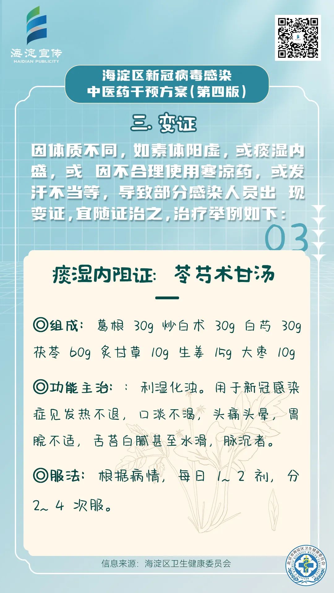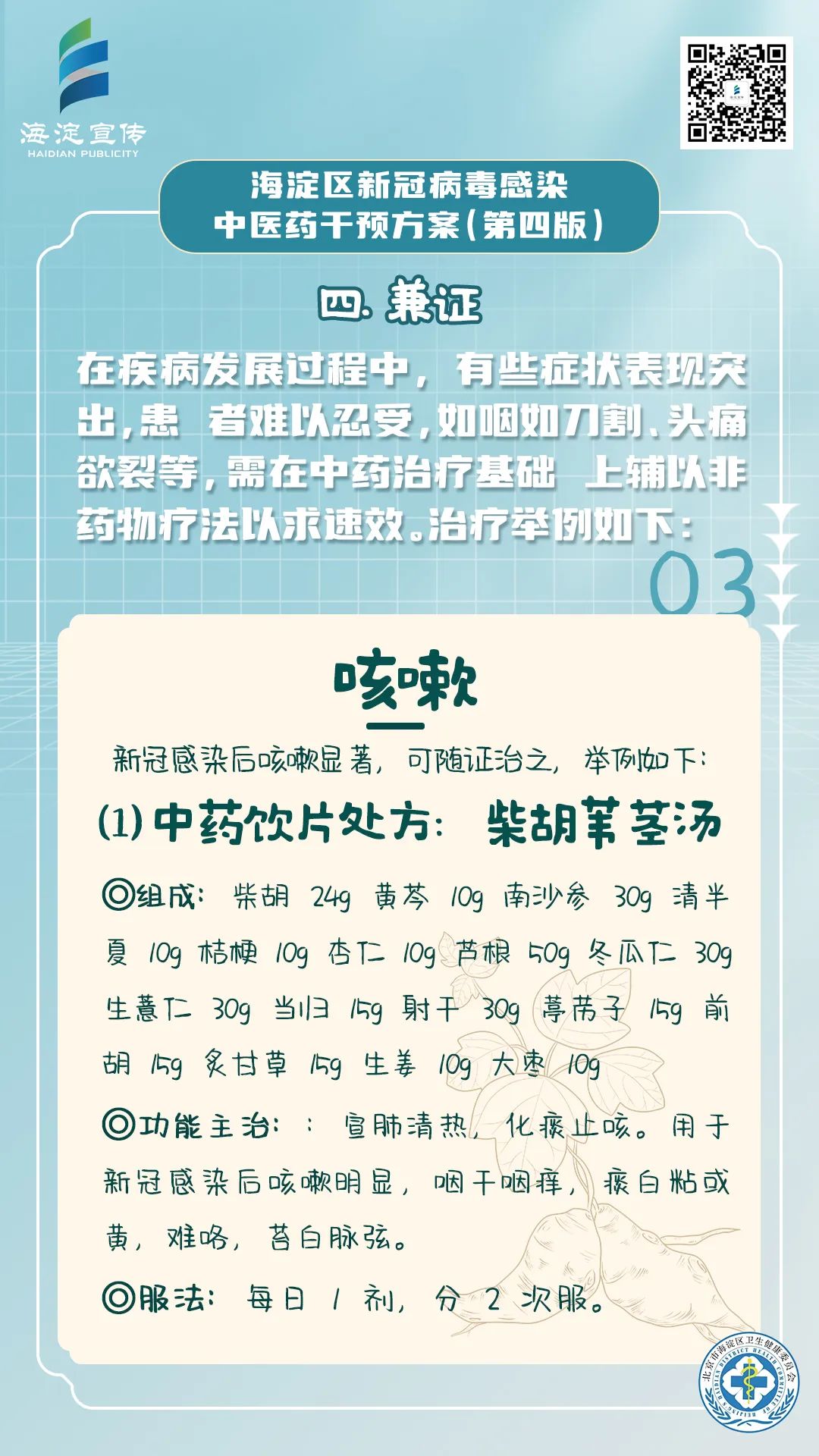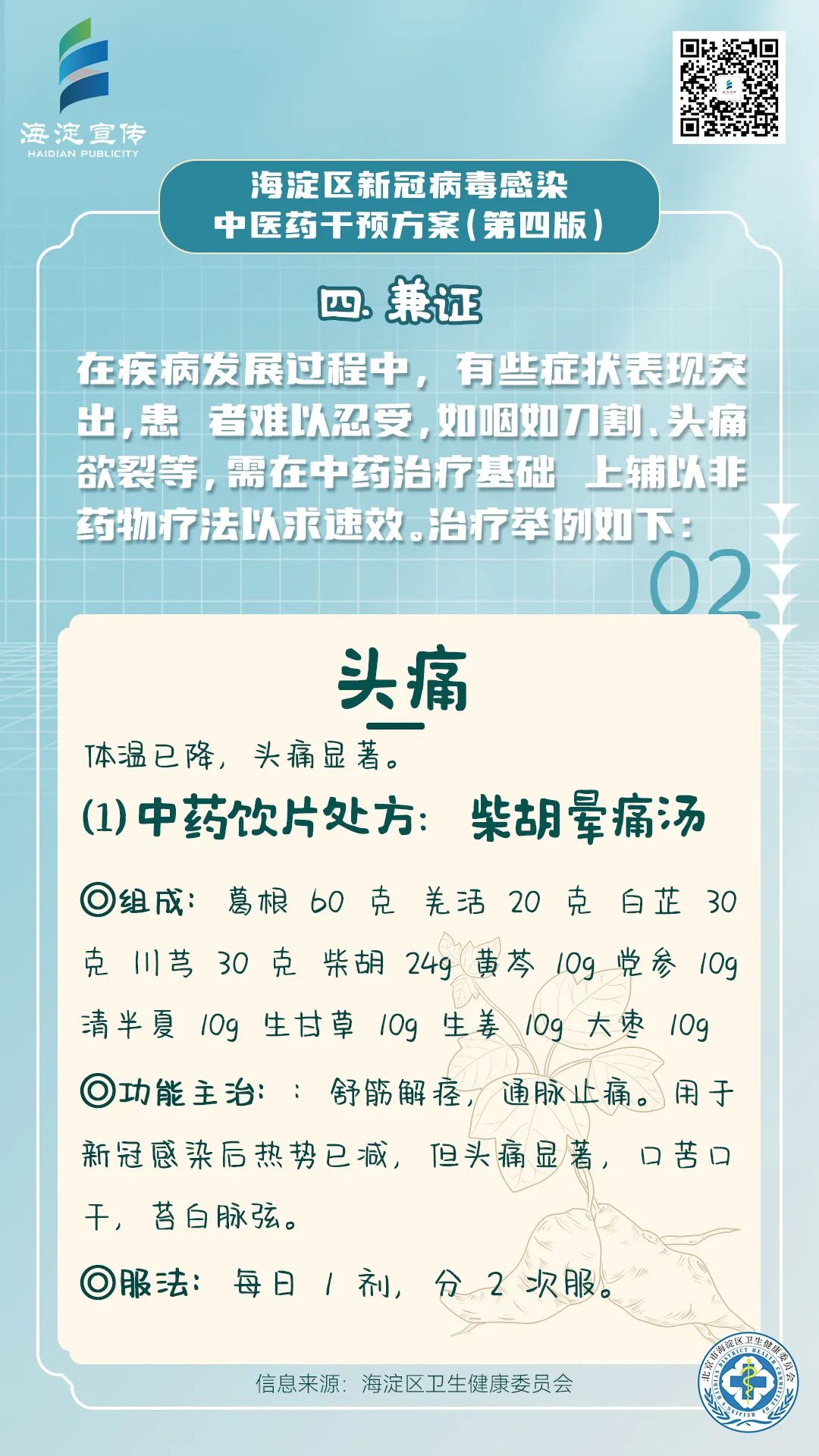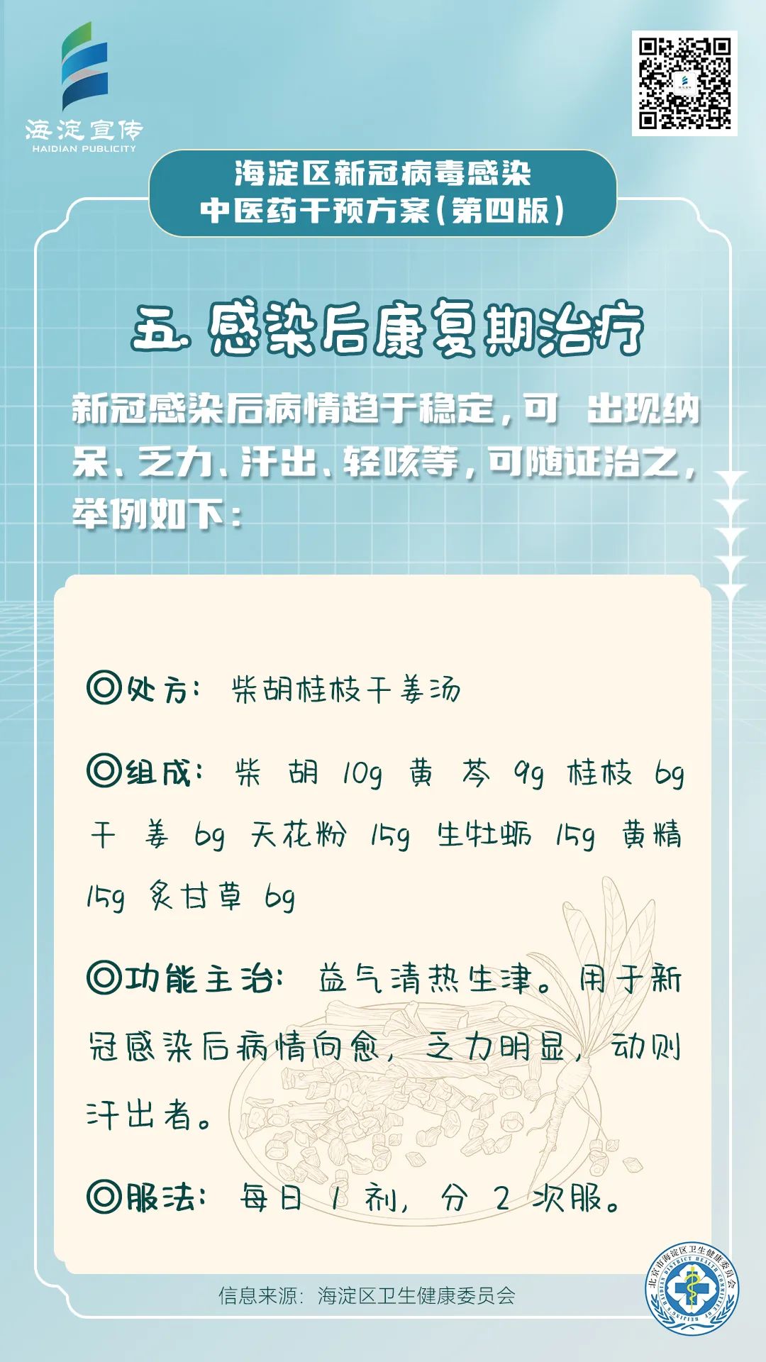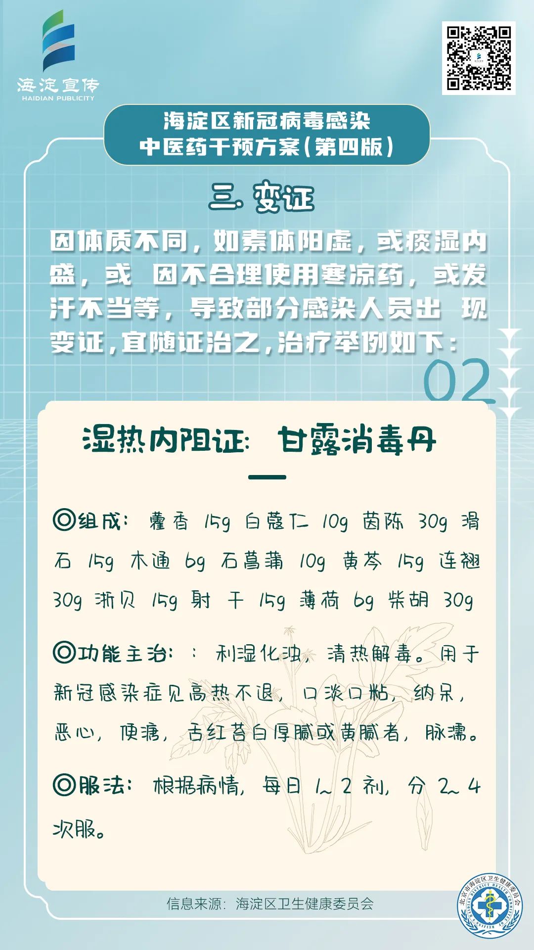 《海淀区新冠病毒感染中医药干预方案(第四版)》供海淀区各医疗机构开展新冠病毒感染中医药诊疗参考使用。