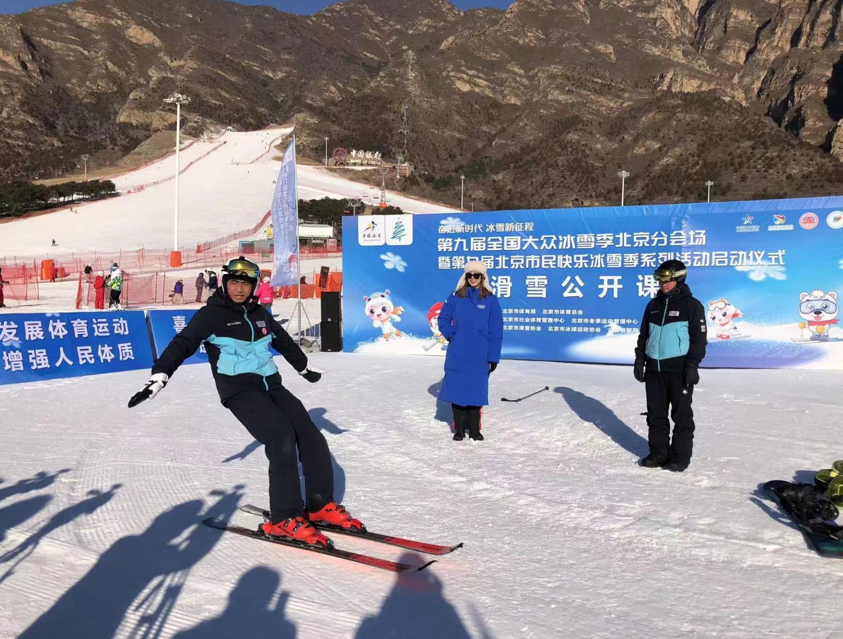 北京市民快乐冰雪季启动仪式上的“滑雪公开课”。图据本端