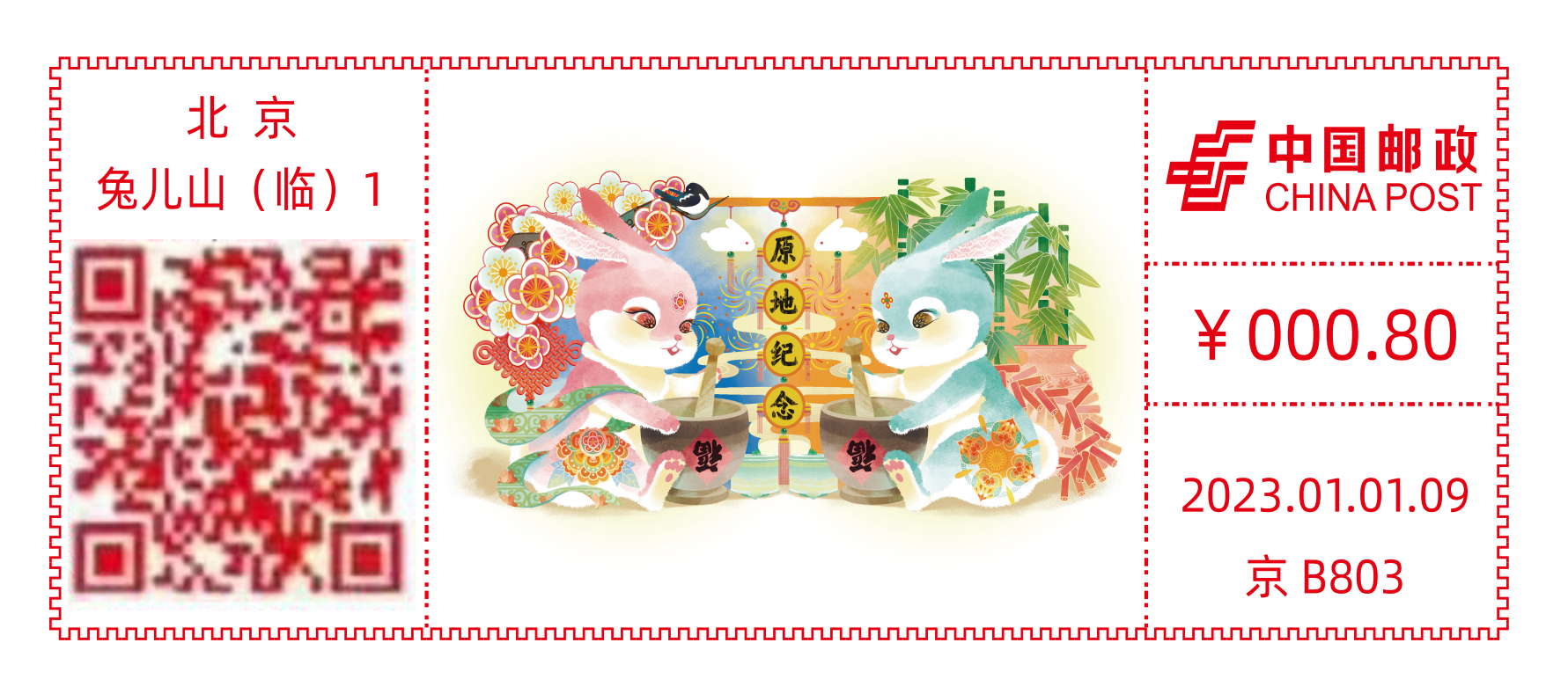值得一提的是,2010年12月1日至2011年2月28日期间,北京邮政在西单邮局内设立“兔儿山”临时邮局,并同时启用“兔儿山(临)”字邮政日戳。除西单邮局外,集邮爱好者还可到西四邮局、西长安街邮局等几个邮政支局加盖此临时邮戳。临时邮戳将生肖与北京地域文化、地名文化相结合,留住了人们对老北京地名的怀念。