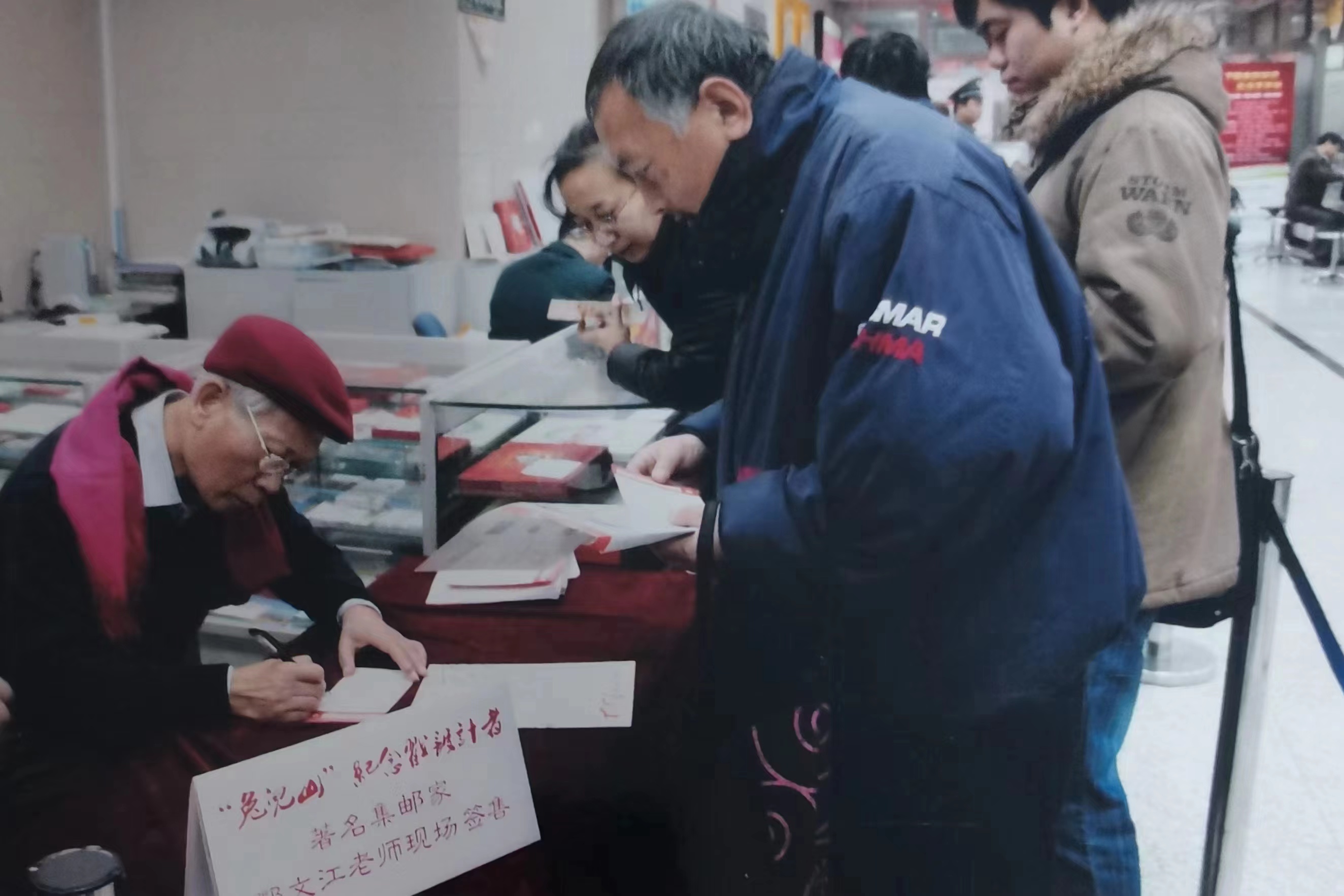 2010年12月1日,集邮家鄂文江老先生现场为集邮爱好者签字