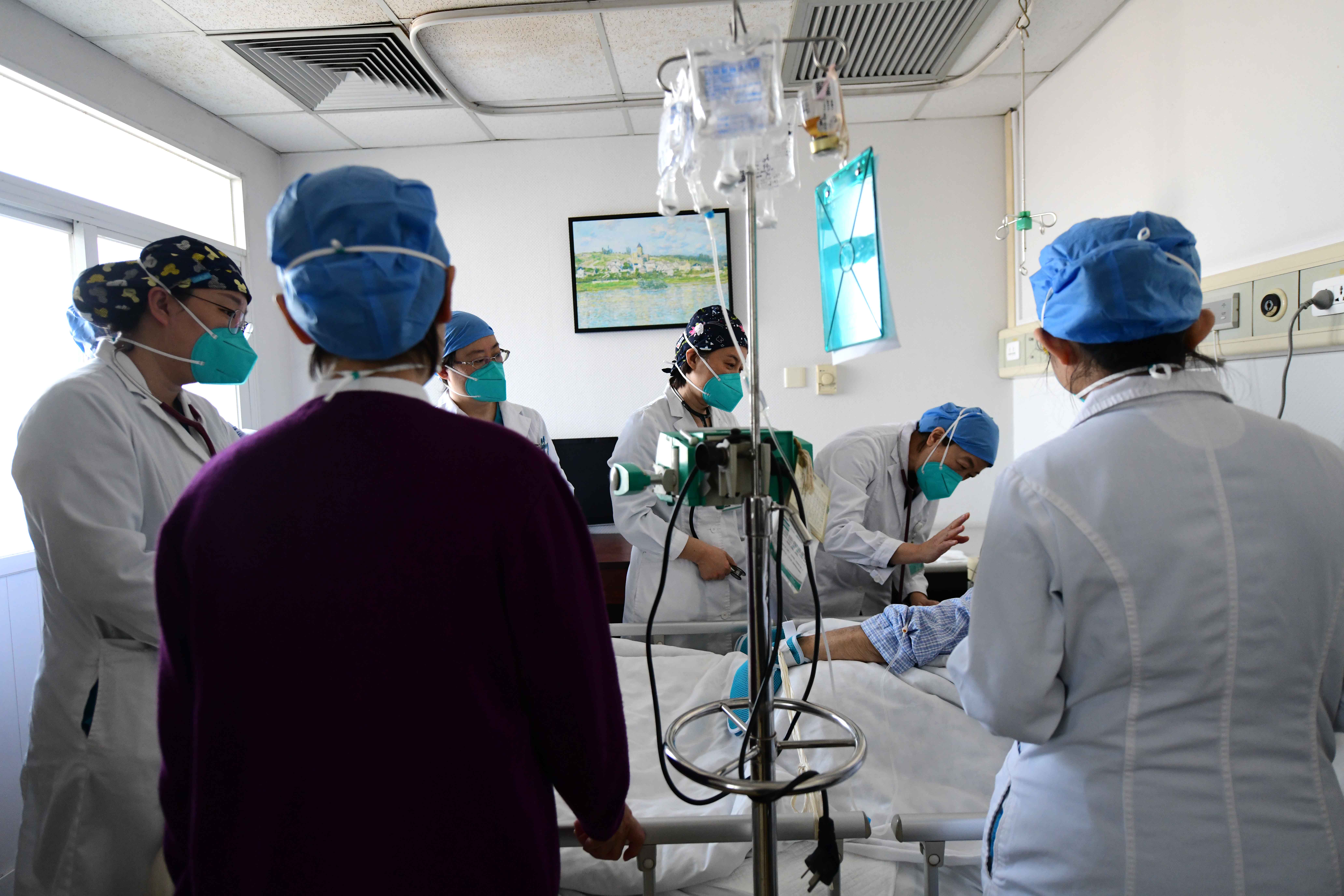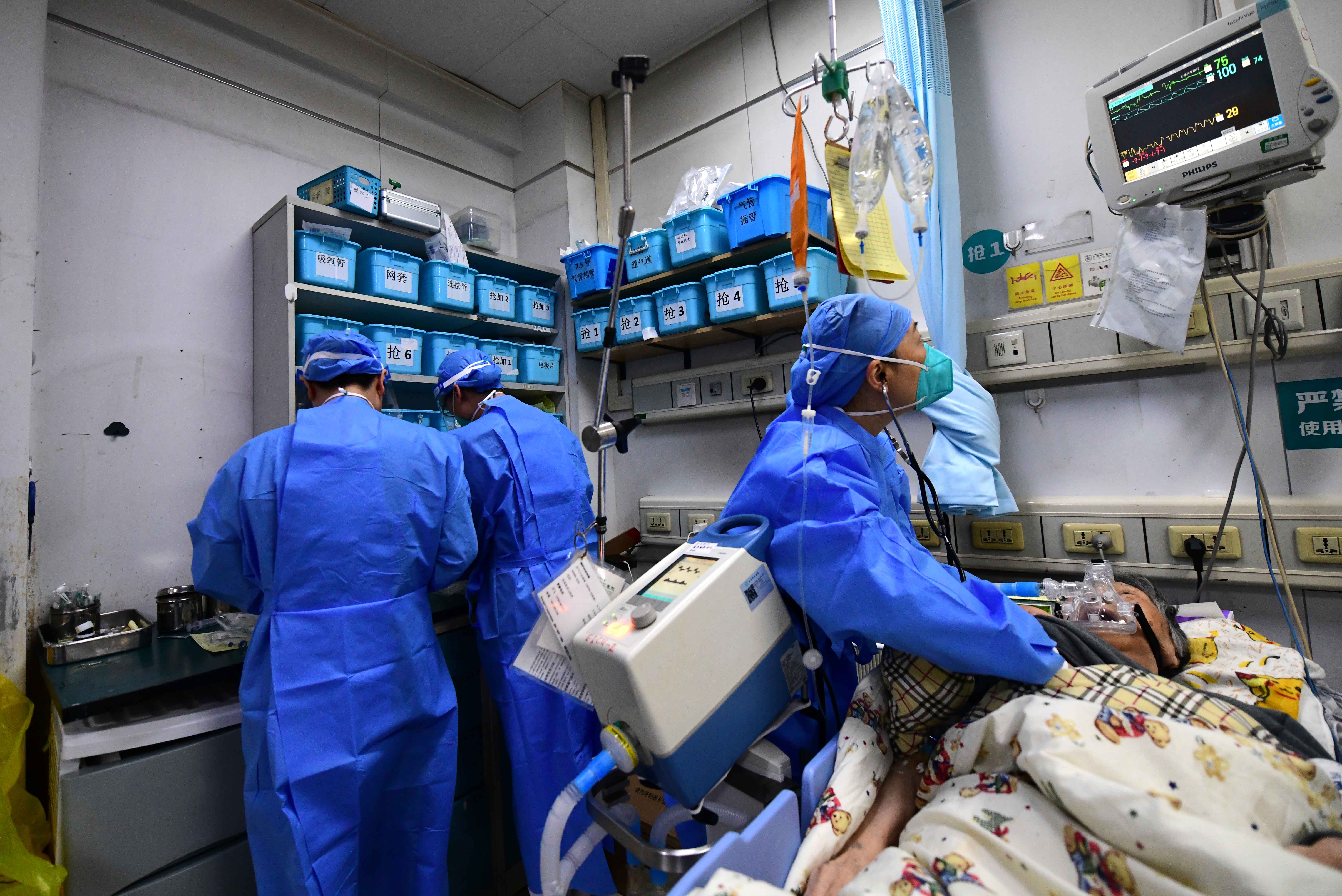 急诊科抢救室,医护人员正在救治患者。