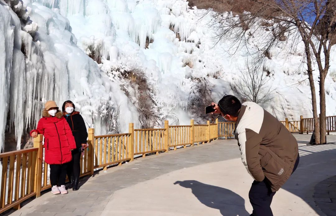 位于旧县镇的云瀑沟景区,也于近日迎来了冰瀑最佳观赏期。晶莹剔透的冰柱高悬陡峭的崖壁之上,在阳光的照射下透着淡淡的蓝色,尽显寒冷中的静态之美,吸引了不少游客前来“打卡”拍照。