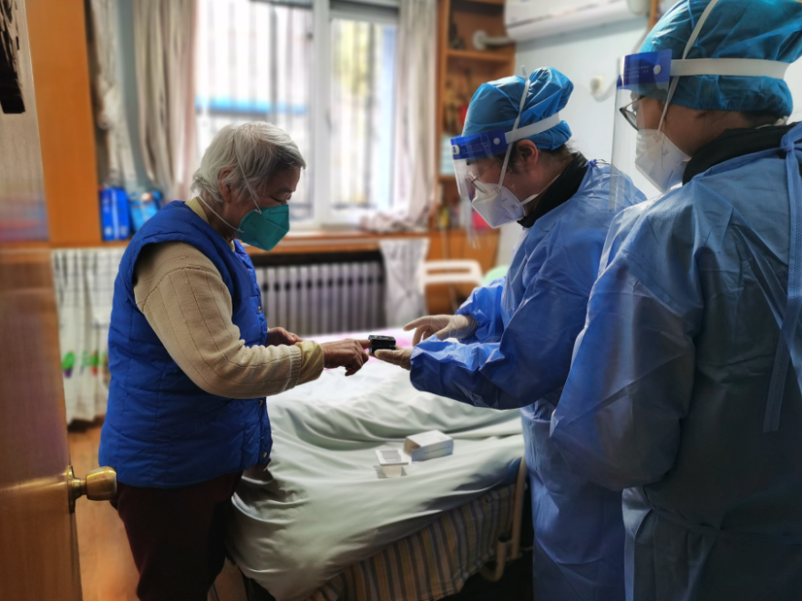 一家接一家,中途没有任何休息时间。每到一户,杨冬旭都会帮着老人做一些基本检查,或者开具一些药品。杨冬旭说:“最近,市卫健委要求社区组织对独居老年人等高风险人群发放血氧夹。我们抓紧时间通知了符合要求的老年居民,腿脚好的可以来服务站领取血氧夹,腿脚不便的独居老人可以等我们送血氧夹上门。作为家庭医生,我们的责任之一就是充分掌握老人们的最新健康情况。我们计划有机会就常拜访,陪他们聊聊天,让老人们安心。”