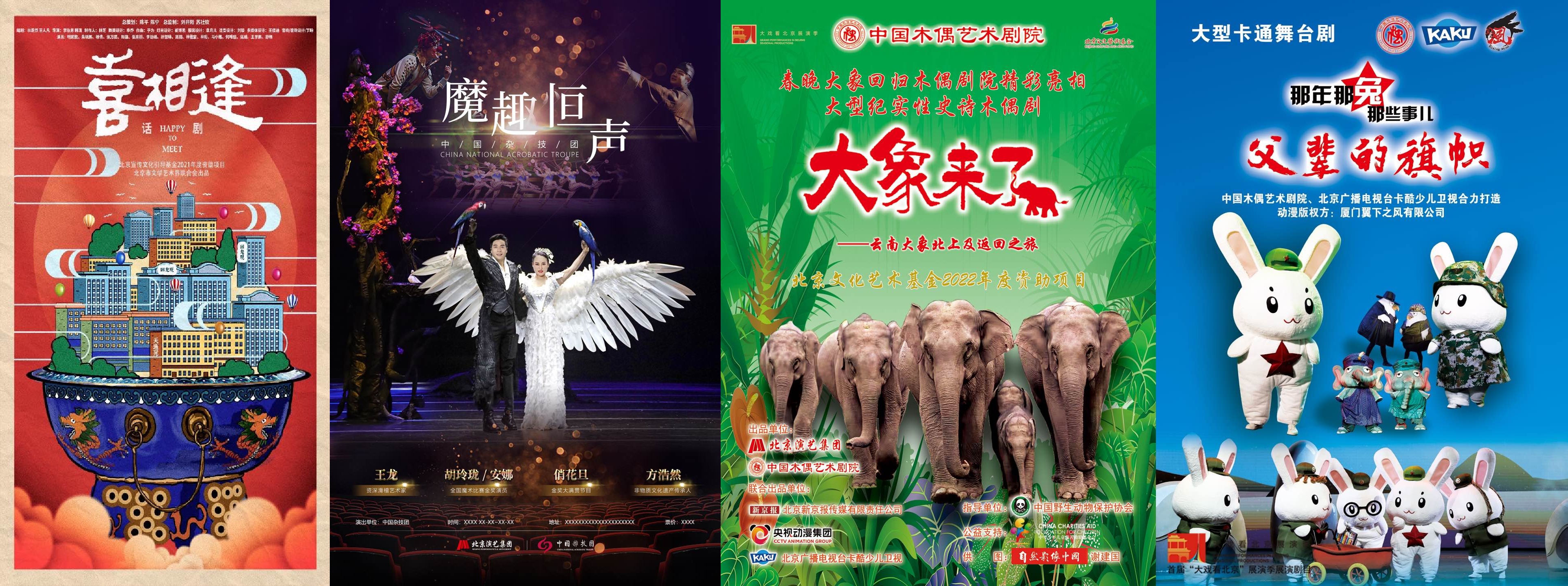 原创作品同样精彩。话剧《喜相逢》讲述了青年摄影师赵大河从老家东北来到北京,结识了一众善良、热心、埋头为生活打拼的新老邻居的故事;魔术口技晚会《魔趣恒声》集大型魔术、趣味魔术、近景魔术、传统戏法为一体,打造了一场古老与年轻、传统与现代共荣共生的艺术盛宴。此外,根据真实事件改编的木偶剧《大象来了》展现了由15头大象组成的亚洲象群在西双版纳雨林中旖旎前行、欢快玩耍的愉快场面;取材自同名动漫的互动式偶型剧《那年那兔那些事儿-父辈的旗帜》,将抗美援朝、“两弹一星”、脱贫攻坚战、抗击新冠疫情、垃圾分类等一系列重要历史事件以及时政热点事件向观众娓娓道来。