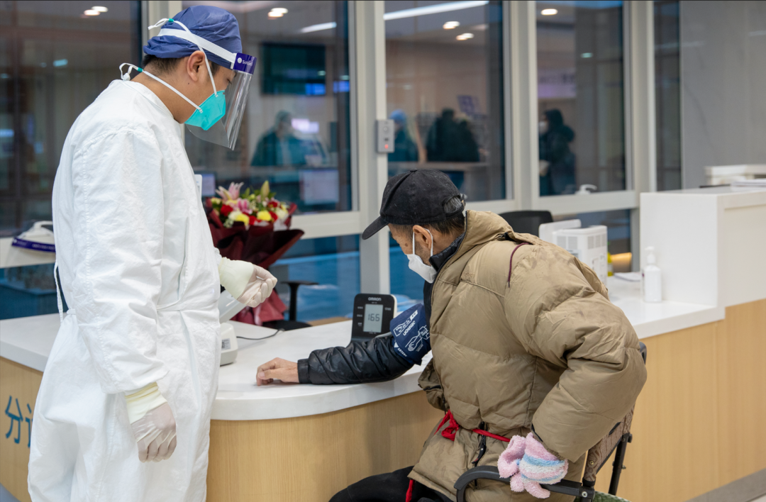 医护人员的付出,患者们也都看在眼里。内科诊室门口排了长长的队伍,但安静有序。“医生真的很辛苦!一上午连口水都喝不上。”张先生(化名)说,自己85岁的母亲已经连续7天来输液治疗,现在已经好转了,“我们全家都能过个好年。”