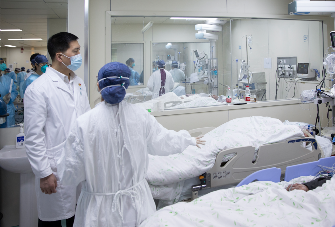 早上八点,急诊科主任田兆兴在新龙泽院区急诊抢救室交班,逐一对每一床患者进行查体。护士长薛艳丽则带领护士们进行工作交接。“原本抢救室有13张床,现在有24名患者,高峰时期收治了30多名。”田兆兴说,“这一个多月是对急诊科综合救治能力的考验,但我们扛过来了,现在一切都在好转。”