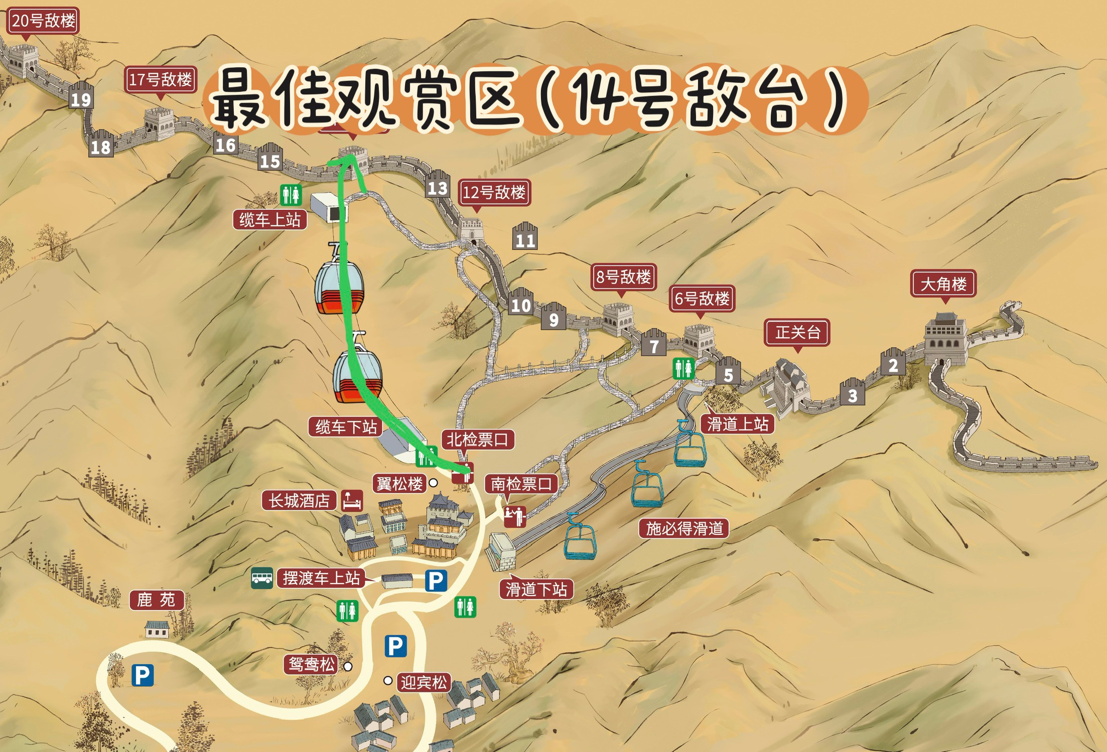 “元旦当天早晨6点,景区将开始检票工作,游客可以乘缆车来到14号敌台的平台处静候日出。6点半,精彩的舞龙舞狮、武术表演将在这里上演。7点20分左右,游客们将一起迎接新年日出。”慕田峪长城景区营销管理部经理李叆如介绍,“路途较远的游客,可以提前一天入住景区内的长城酒店。路途较近的游客则可以自驾上山,停好车后,乘坐缆车到平台参与活动。景区在早晨7点半之前,都允许车辆上山。”