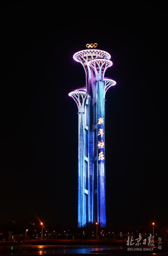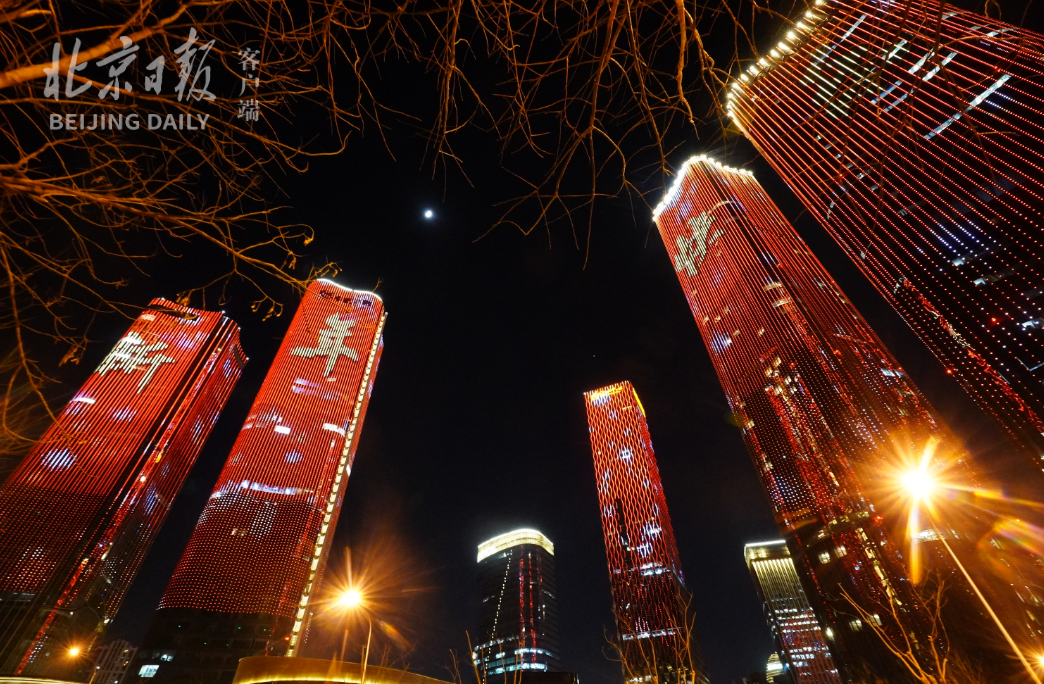 灯光秀以“相约朝阳,喜迎新年”为主题,