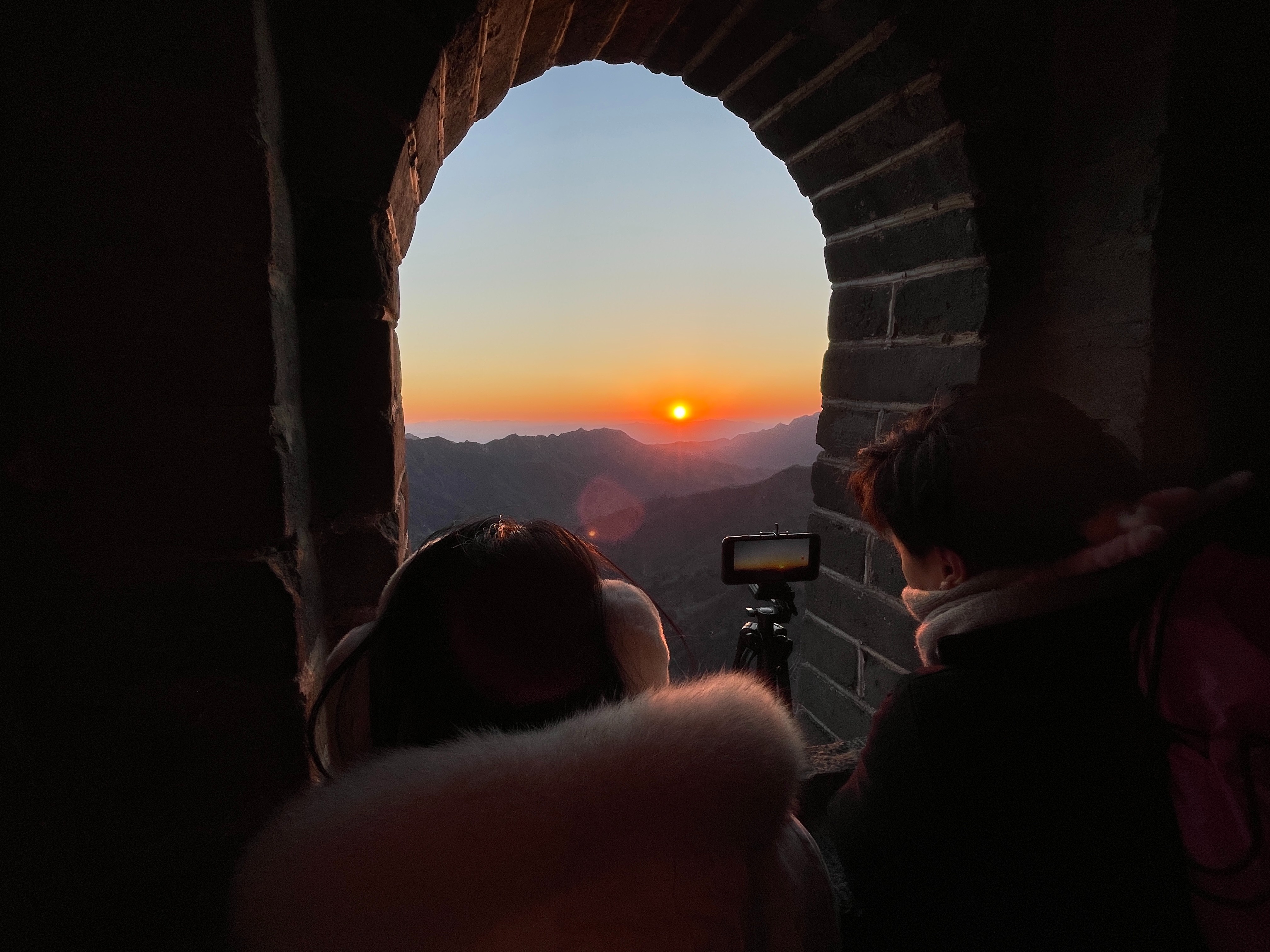 近7点半,东方渐亮,一轮红日从地平线上缓缓升起。不一会儿,整个太阳便呈现在游客面前,绵延的长城也在晨光中变得金黄耀眼。此时快门的咔嚓声此起彼伏,游客们纷纷用镜头记录下了这一壮美的景色。