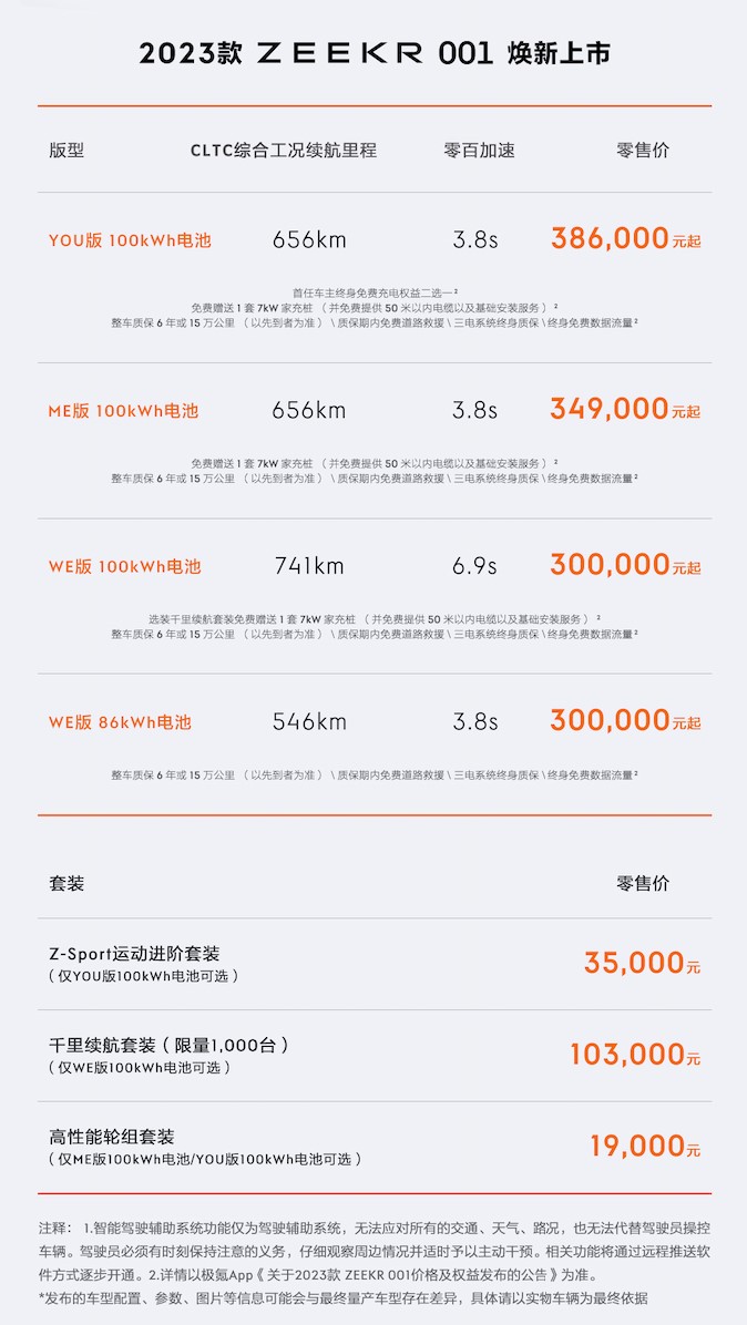 新年第一天,极氪智能科技宣布旗下豪华猎装轿跑——极氪001 2022年累计交付71941台,并且在12月持续蝉联“30万以上中国品牌纯电车型销量冠军”。同时,2023款极氪001正式上市,全系共4款车型,售价30万元起至38.6万元起,还新提供有Z-Sport运动进阶套装、千里续航套装、高性能轮组套装供用户个性化选择。