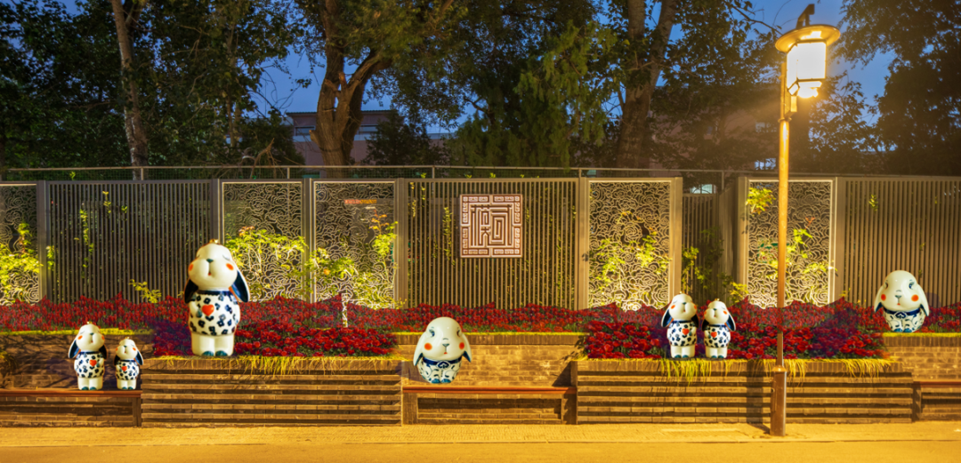 具有鲜明文化特色的青花兔还将布置于红色月季花坛中。