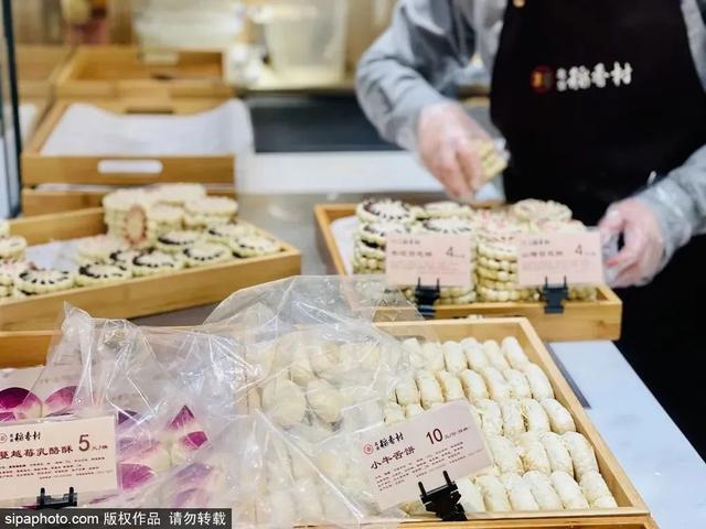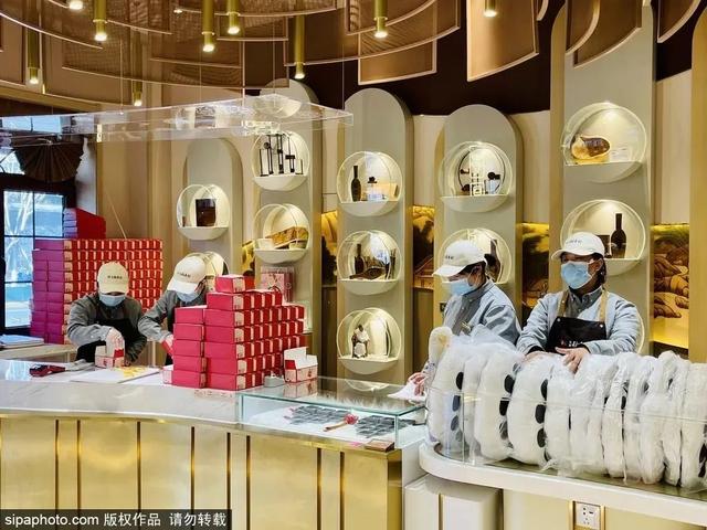 在这里,游客可以透过明亮的玻璃看到师傅们现场制作糕点的过程。绿豆馅经过模具轻轻一磕,就化身成为纸、笔、砚台等不同立体造型的“文房四宝”糕点;国潮京韵的京剧脸谱以一个个卡通形象跃然于一块块糕点上,颇具萌趣;还有颇具老北京特色的“文玩核桃”、柿子形状的“柿柿如意”、东四北大街152号的“胡同门牌”等创新糕点,都透出浓浓的京味儿。