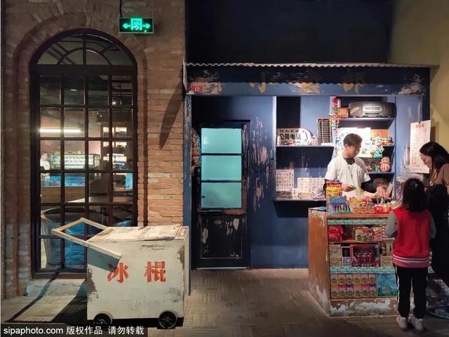 来到王府井百货大楼的地下2层,一座真实、鲜活的老北京城开始铺陈在眼前——“北京站”的绿皮火车、“西城区”的修鞋点、“凭票供应”的国营粮油店、白灯牌红字的录像厅……一条还原上个世纪北京人生活的小胡同,更是引起了游客的集体回忆:大二八自行车停在家门口,晾衣绳上挂着胶鞋,冬储大白菜堆在墙根,旁边放着蜂窝煤,门上挂着蓝白珠子门帘……不少游客在这条小胡同流连忘返,见到年龄相仿的人彼此交换一个会心的眼神。