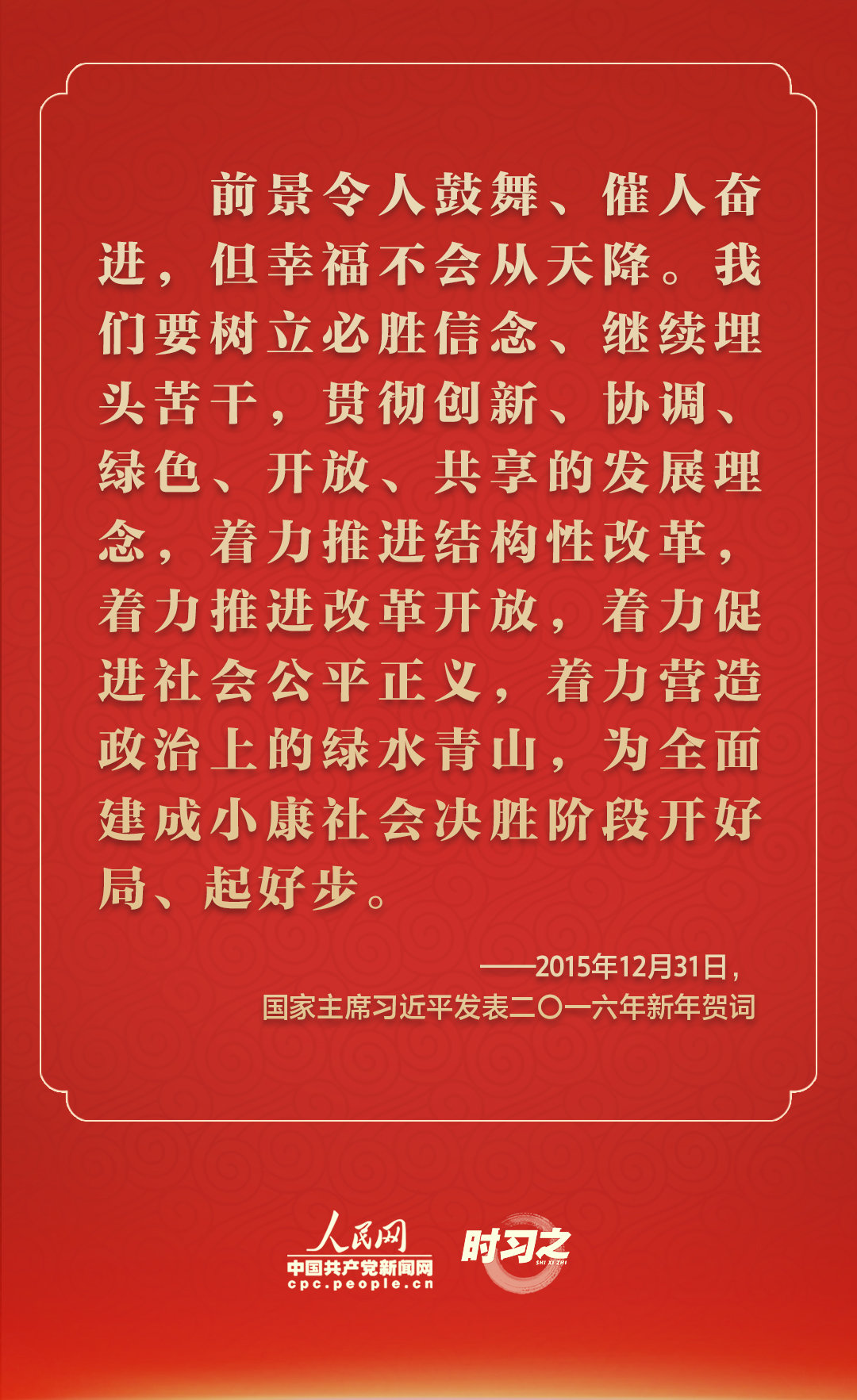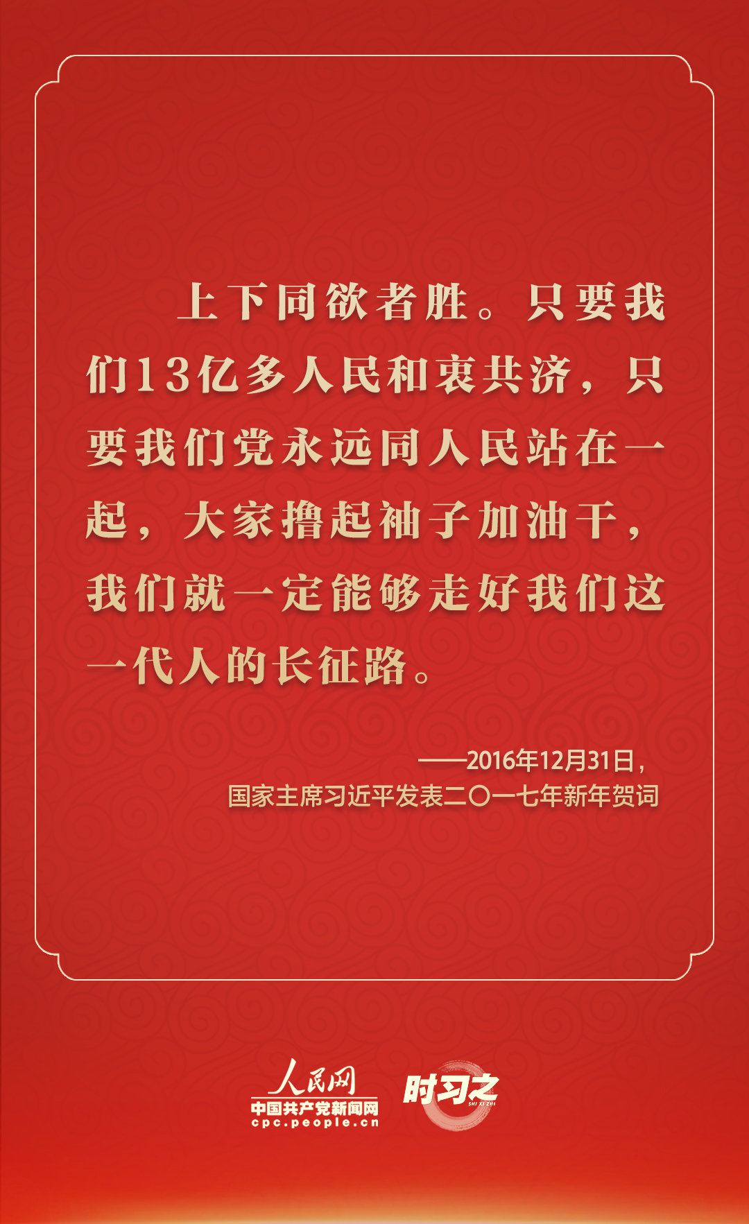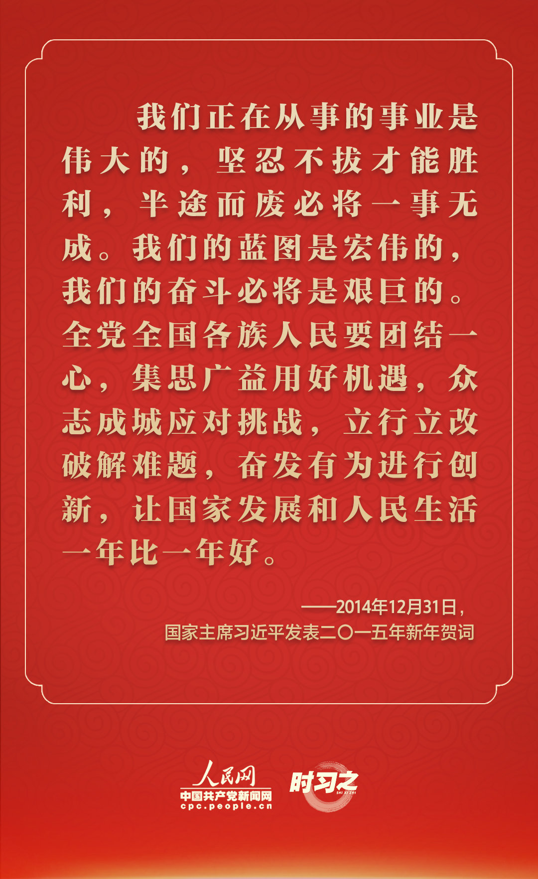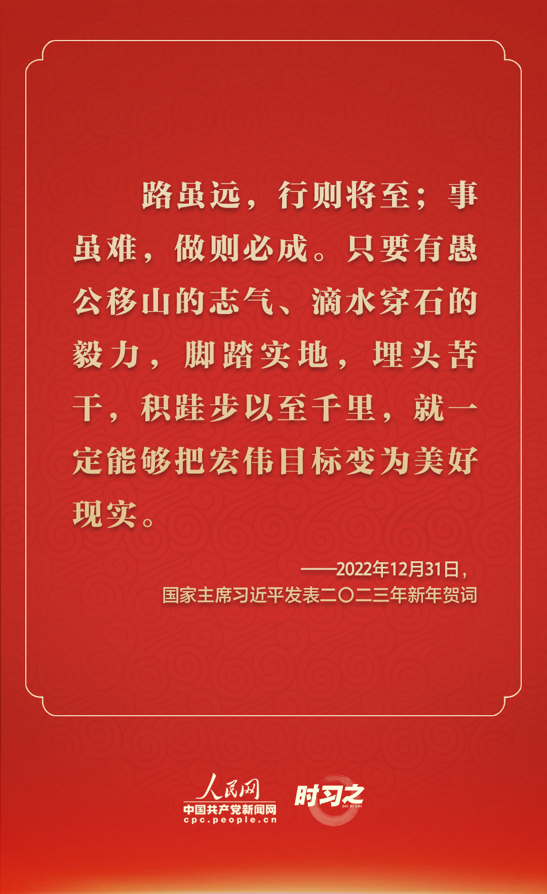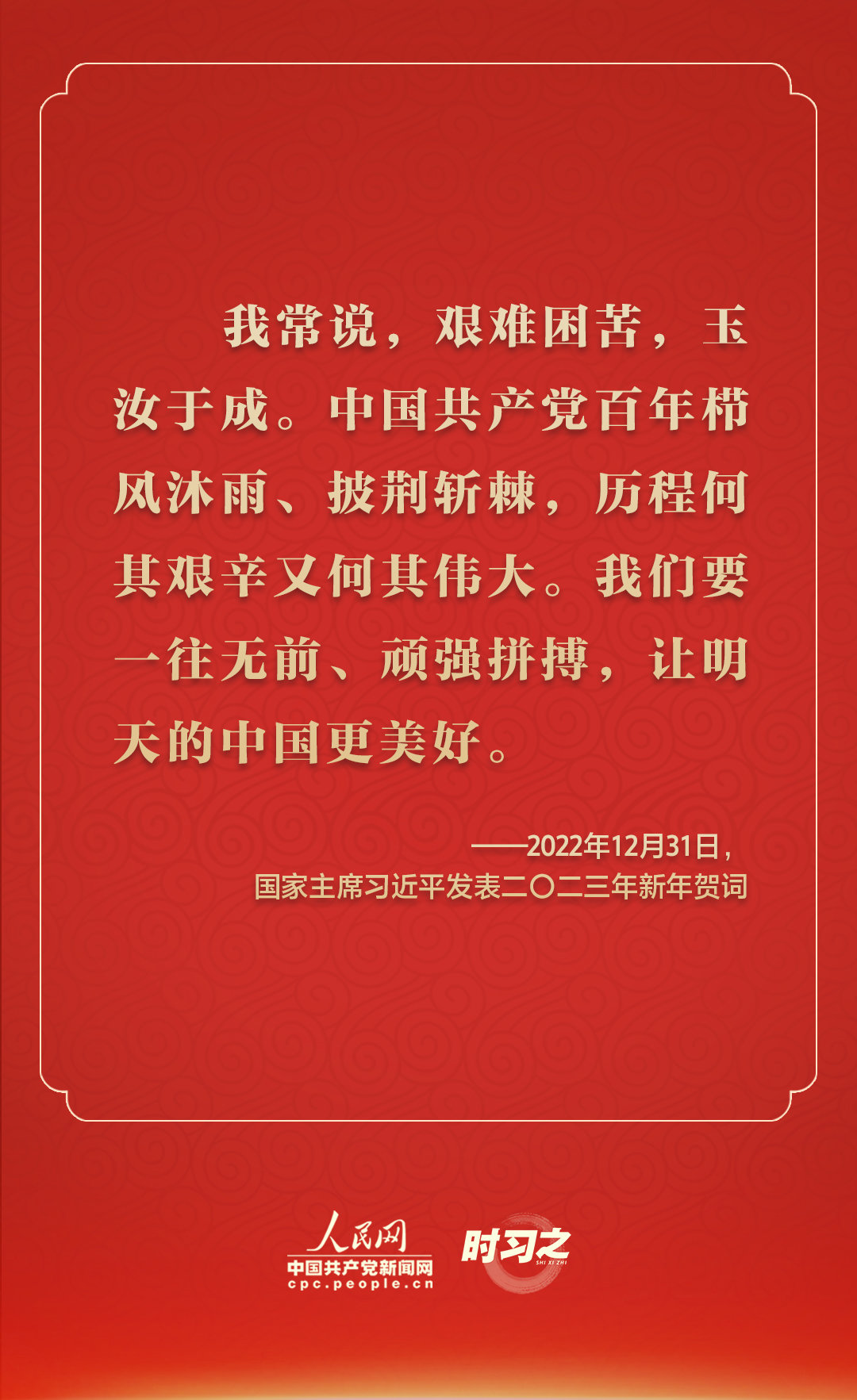 新年前夕,国家主席习近平通过中央广播电视总台和互联网,发表了二〇二三年新年贺词。每一年的新年贺词,习近平主席坚定而温暖的话语直抵人心,是对全党全国各族人民在全面建设社会主义现代化国家新征程上勇毅前行的有力动员。人民网·中国共产党新闻网“时习之”栏目带您一起从习近平主席的新年贺词里汲取前行力量。
