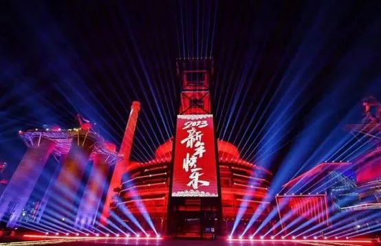 2022年12月31日晚,由北京市文化和旅游局主办,石景山区人民政府、首钢集团共同支持的2023北京新年倒计时活动在石景山区首钢园成功举办。活动以“奋斗新征程,谱写新华章”为主题,通过“古都京韵”“双奥之城”“首都新篇”“大美中国”“美好明天”五个篇章,打造一场工业遗址全景式、沉浸式光影秀活动,充分展现出城市更新发展的科技绚美夜景效果。首钢园内灯光的柔美与建筑的刚硬结合,历史文化与现代科技相呼应,沉浸式的视听盛宴让现场观众大呼过瘾。