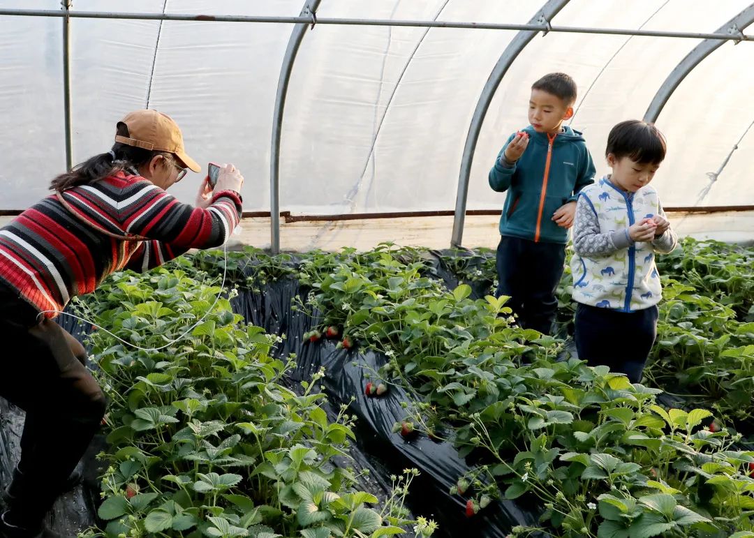 位于北务镇的北京三分地农场内,头茬草莓挂满枝头。元旦期间,众多市民前来采摘。来自朝阳区的市民张叶萍说:“这儿的草莓又大又甜,带孩子来采摘,既可以体验采摘乐趣,同时也能让他了解草莓相关知识,一举两得。”