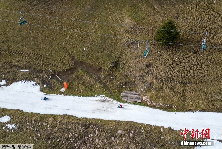阿尔卑斯山一处滑雪胜地仅剩一层薄薄的人造雪。