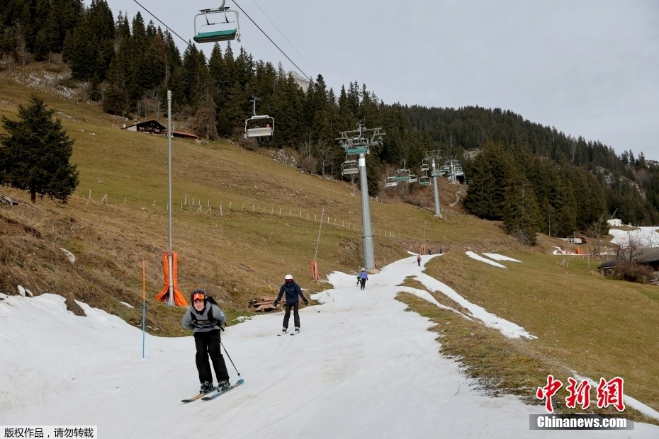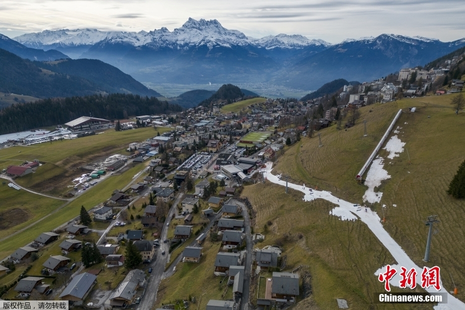 今年,欧洲多地遭遇暖冬天气。据报道,瑞士西北部小城德莱蒙1月1日最高气温达到20.2摄氏度,创下这一位于阿尔卑斯山北侧的城市有纪录以来1月气温最高纪录。图为滑雪场附近的小镇。