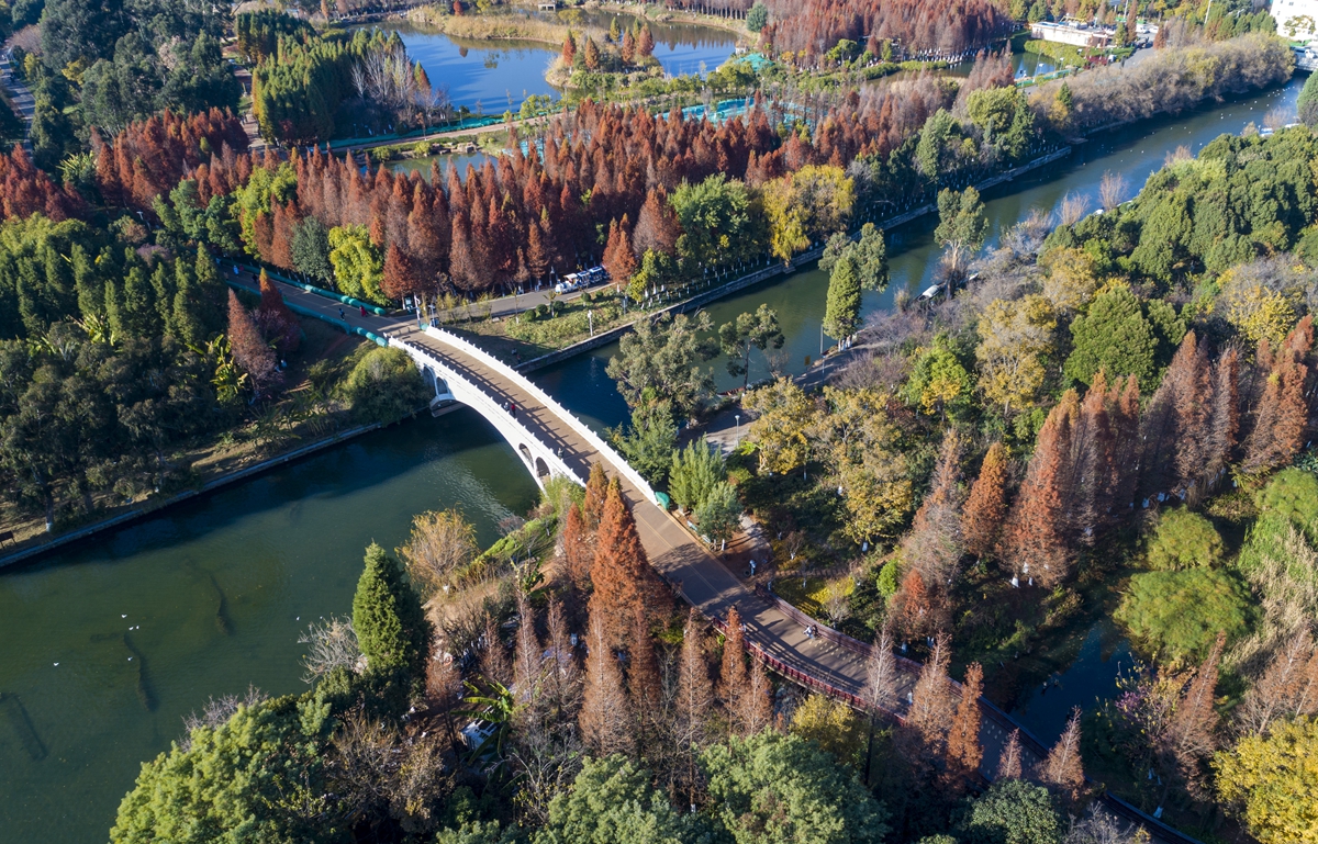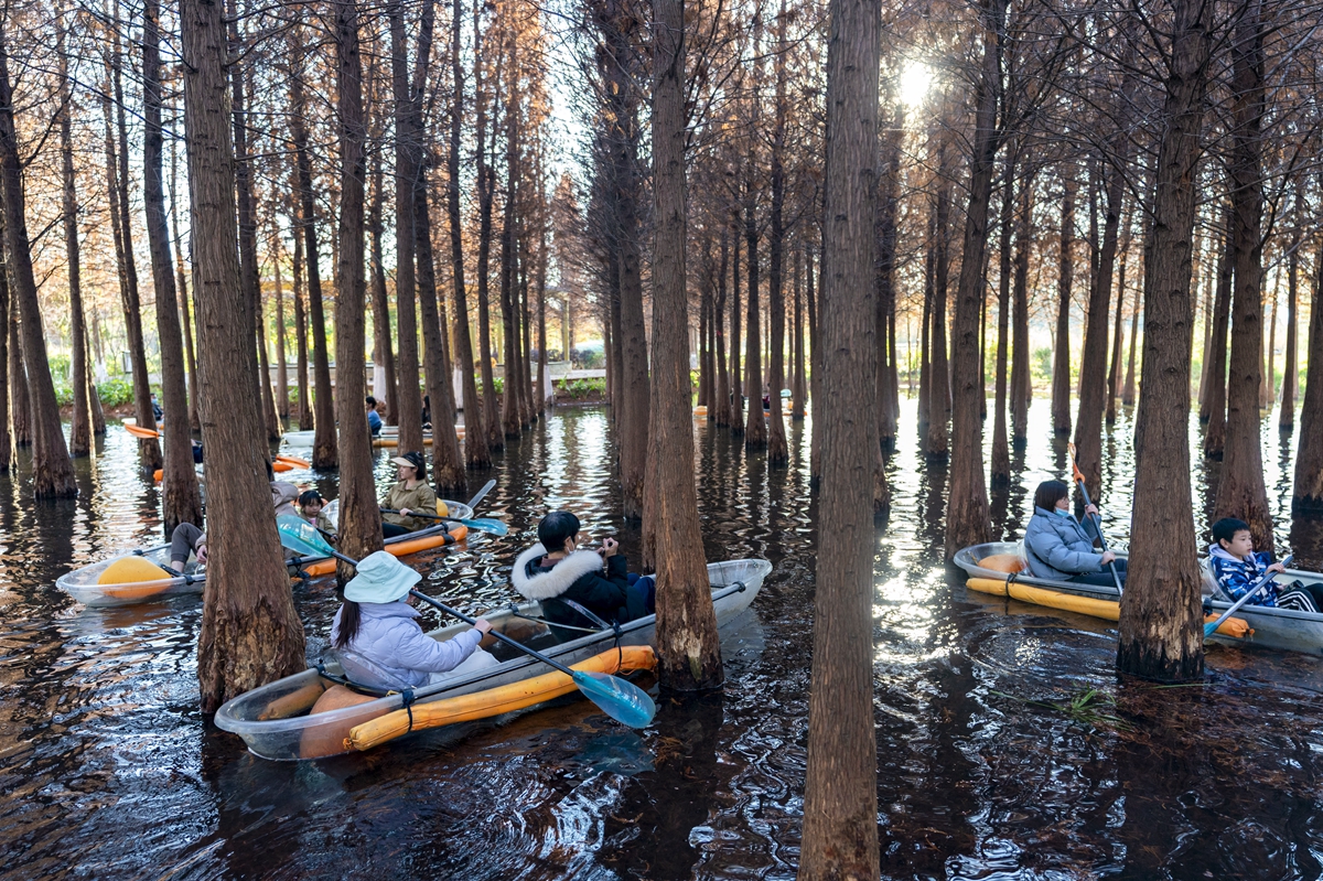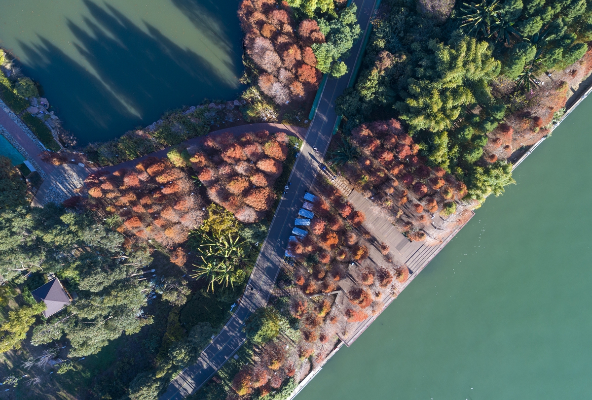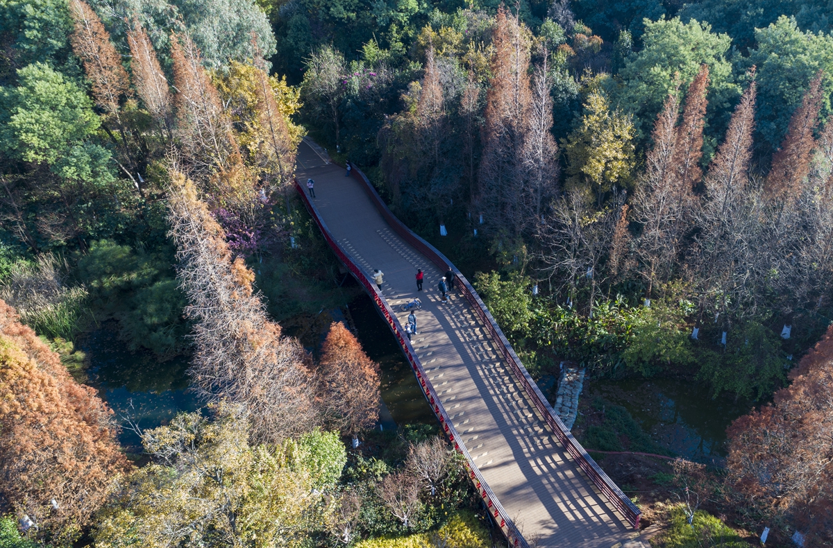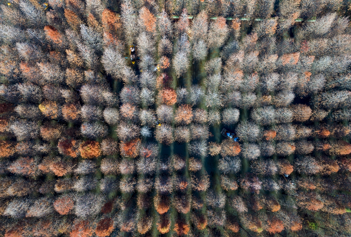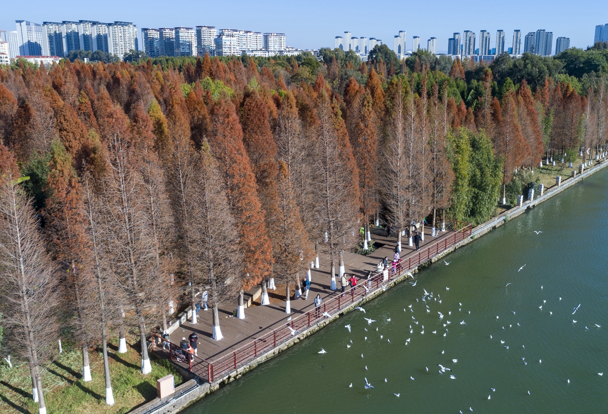 湿地水杉别样红 游客流连忘返