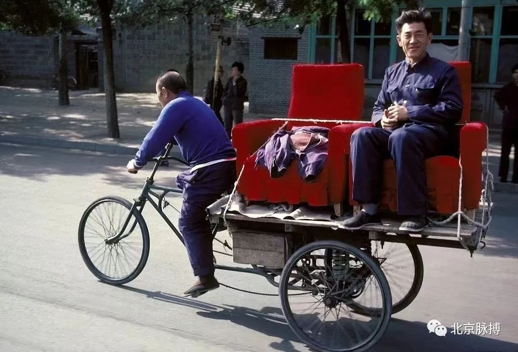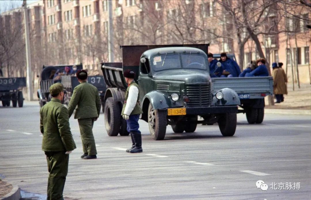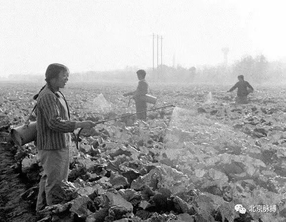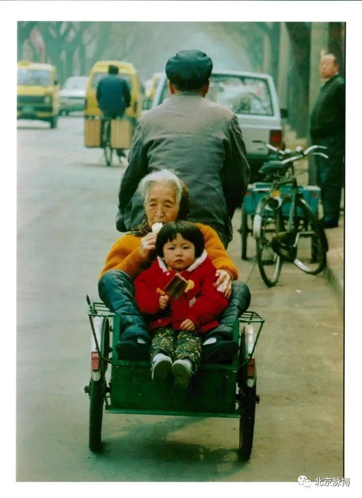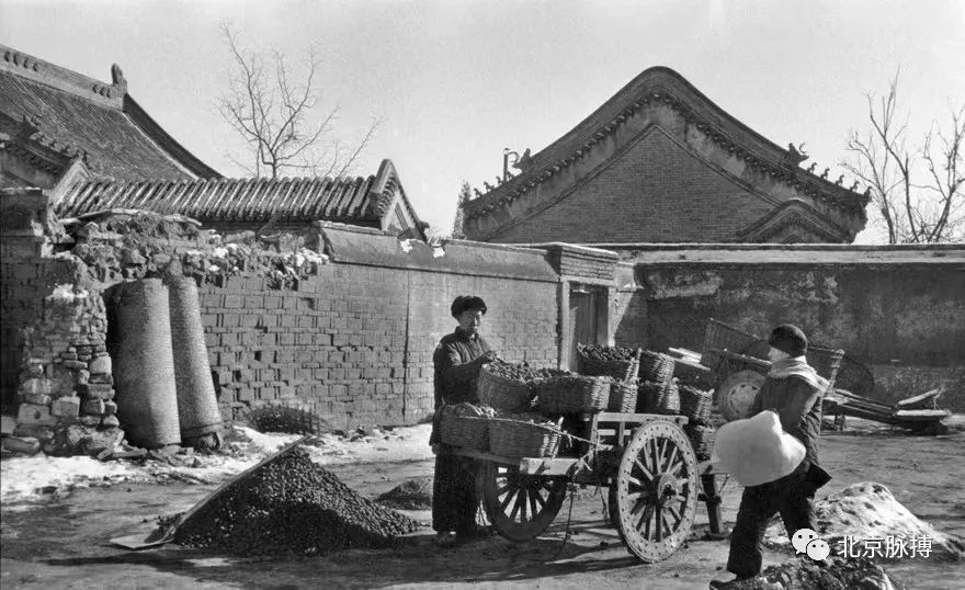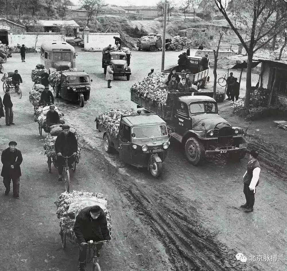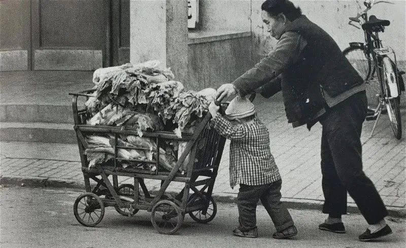 1978年,北京冬储大白菜季节的小脚老奶奶和帮助推车的孙辈