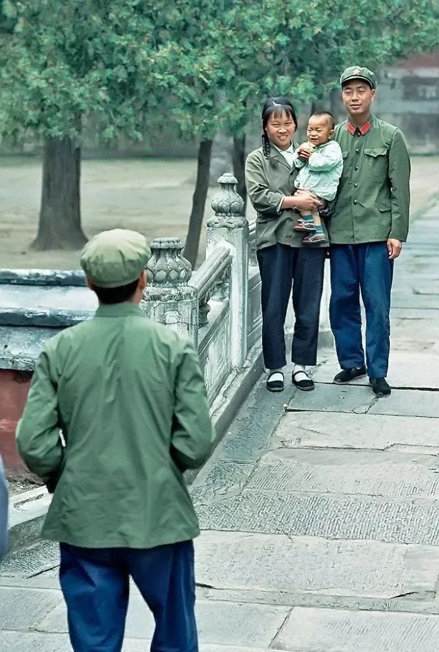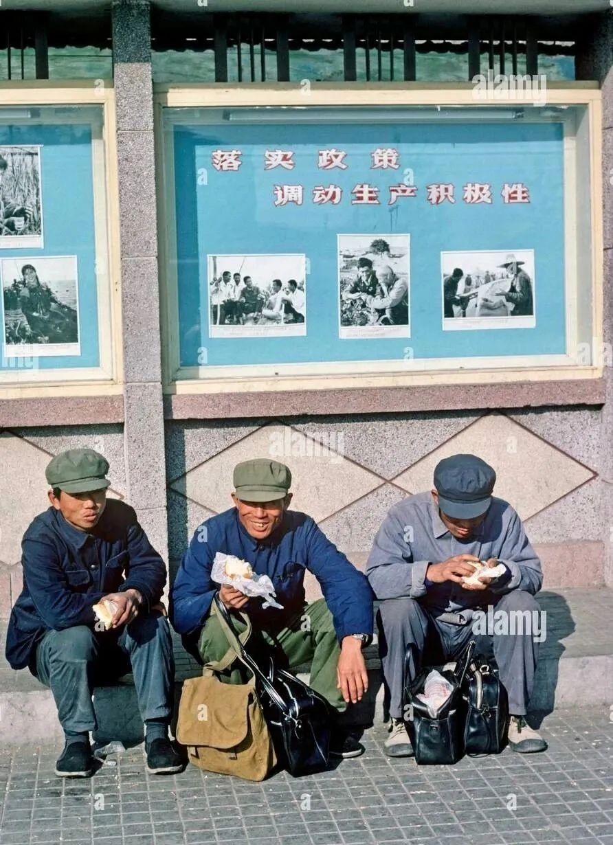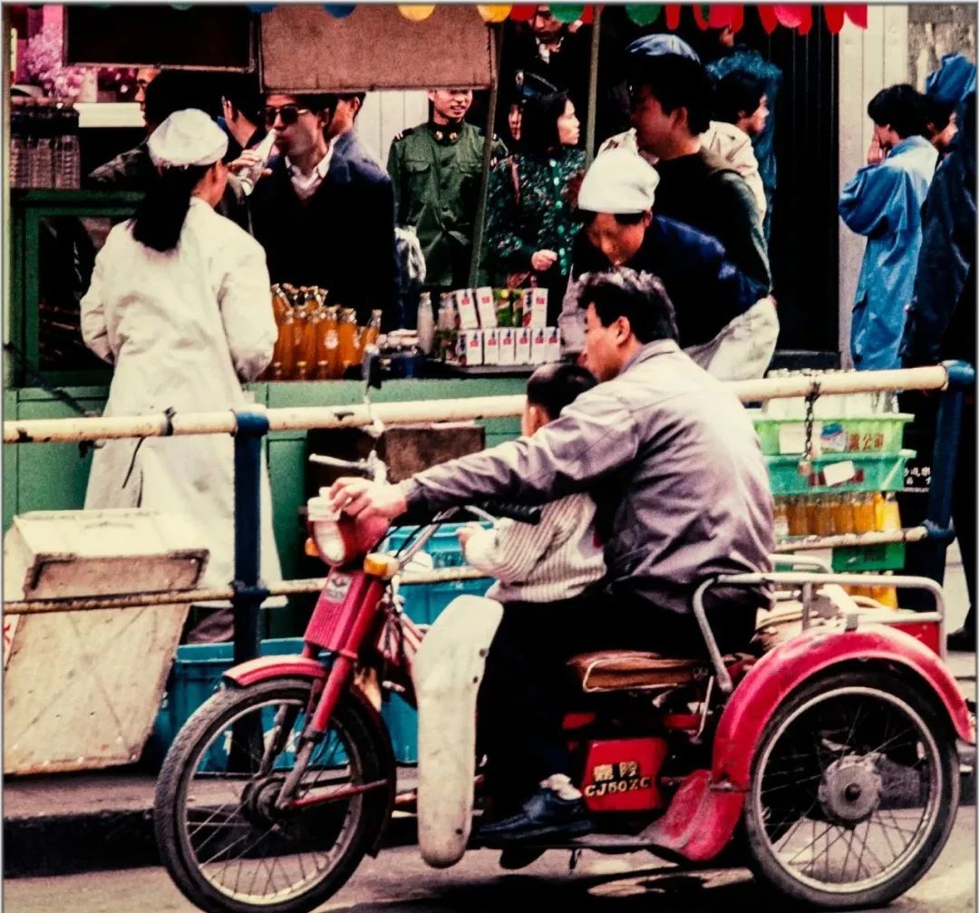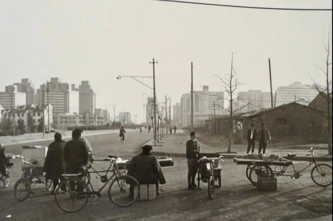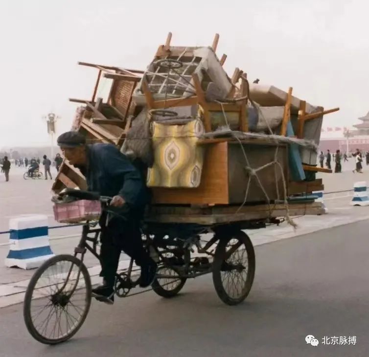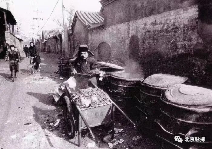 1978年,北京冬储大白菜季节的小脚老奶奶和帮助推车的孙辈