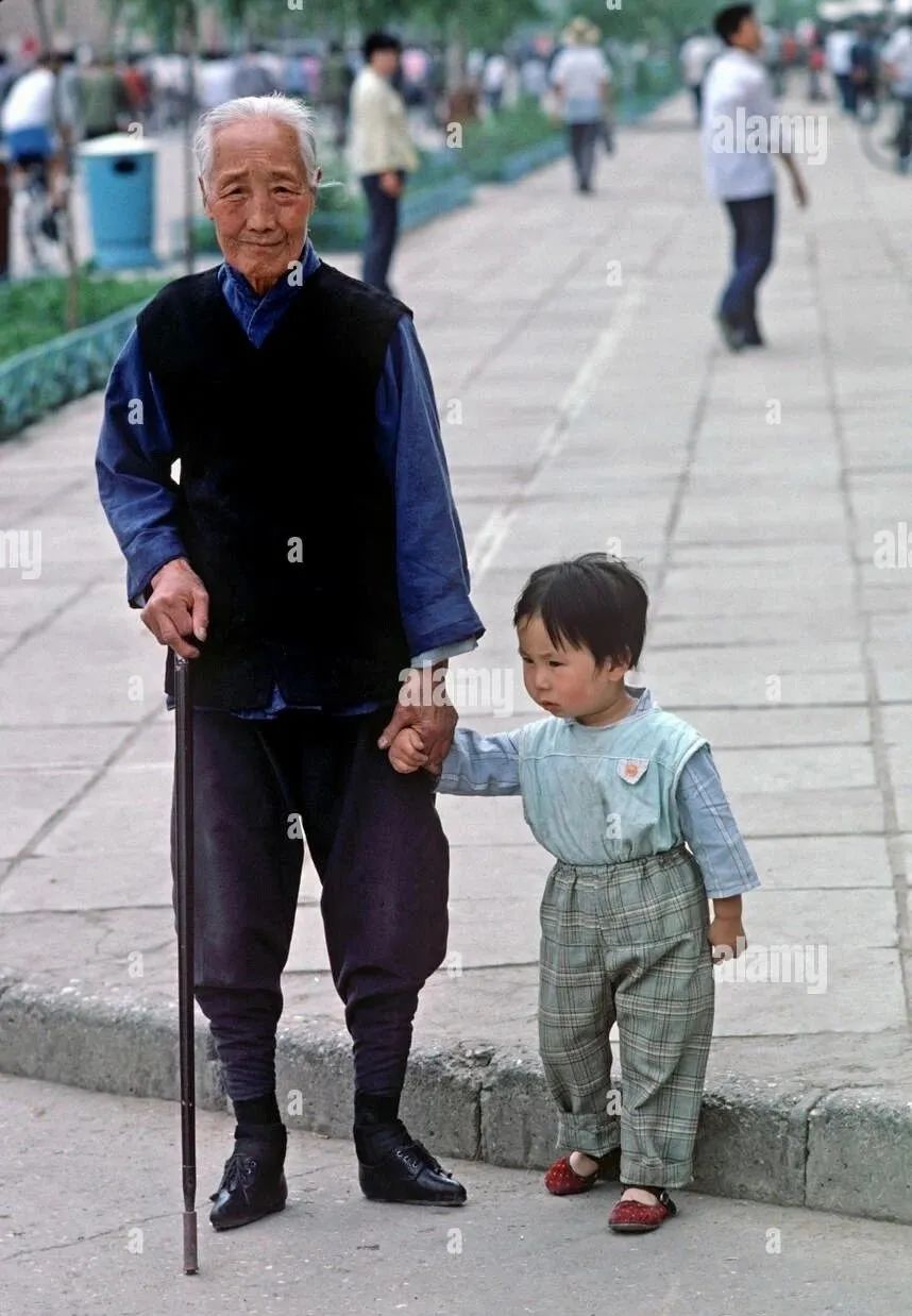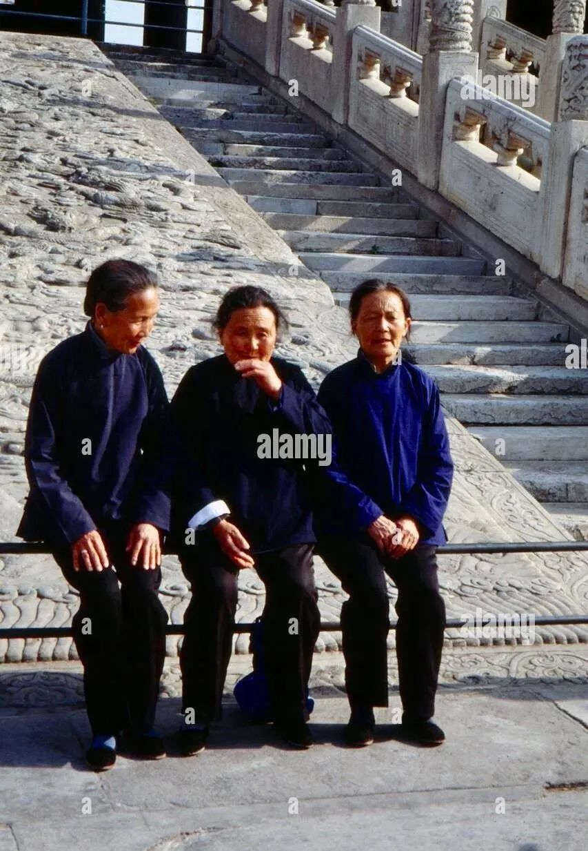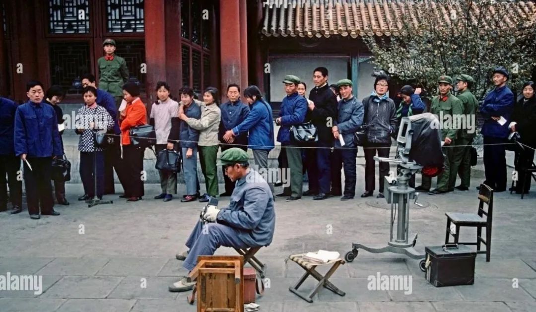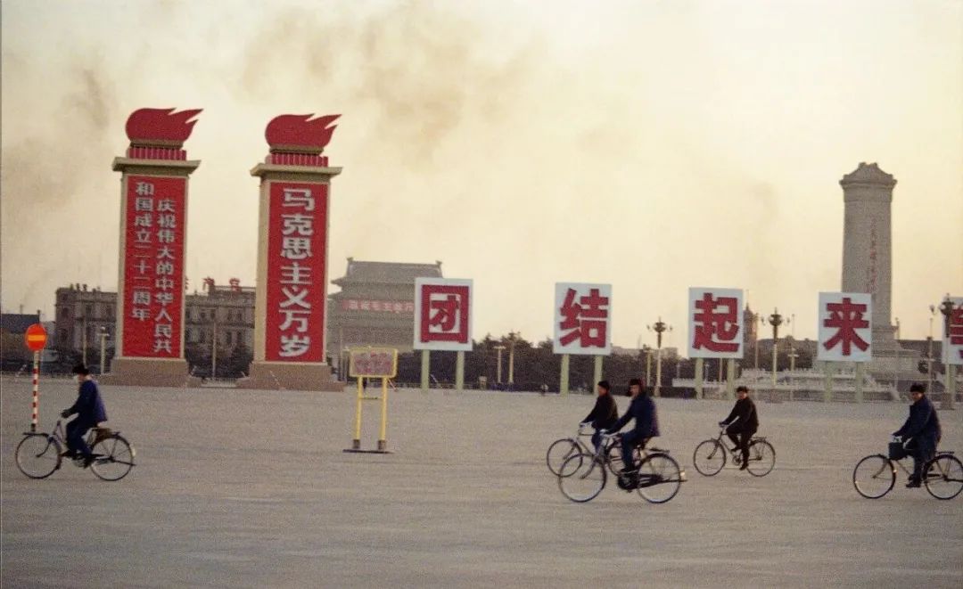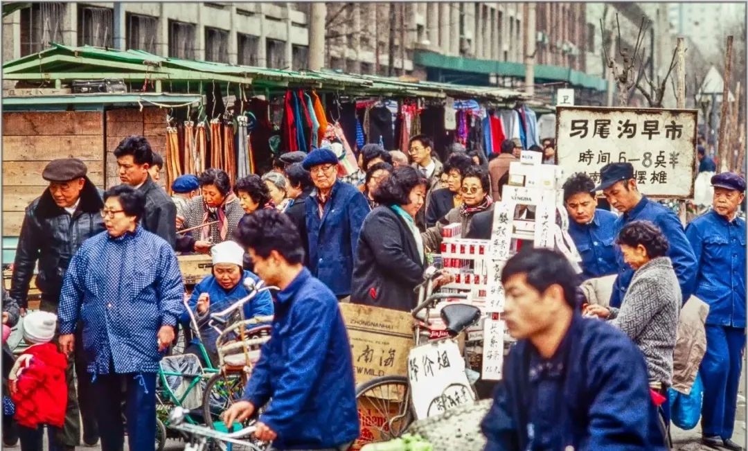 1978年,北京冬储大白菜季节的小脚老奶奶和帮助推车的孙辈