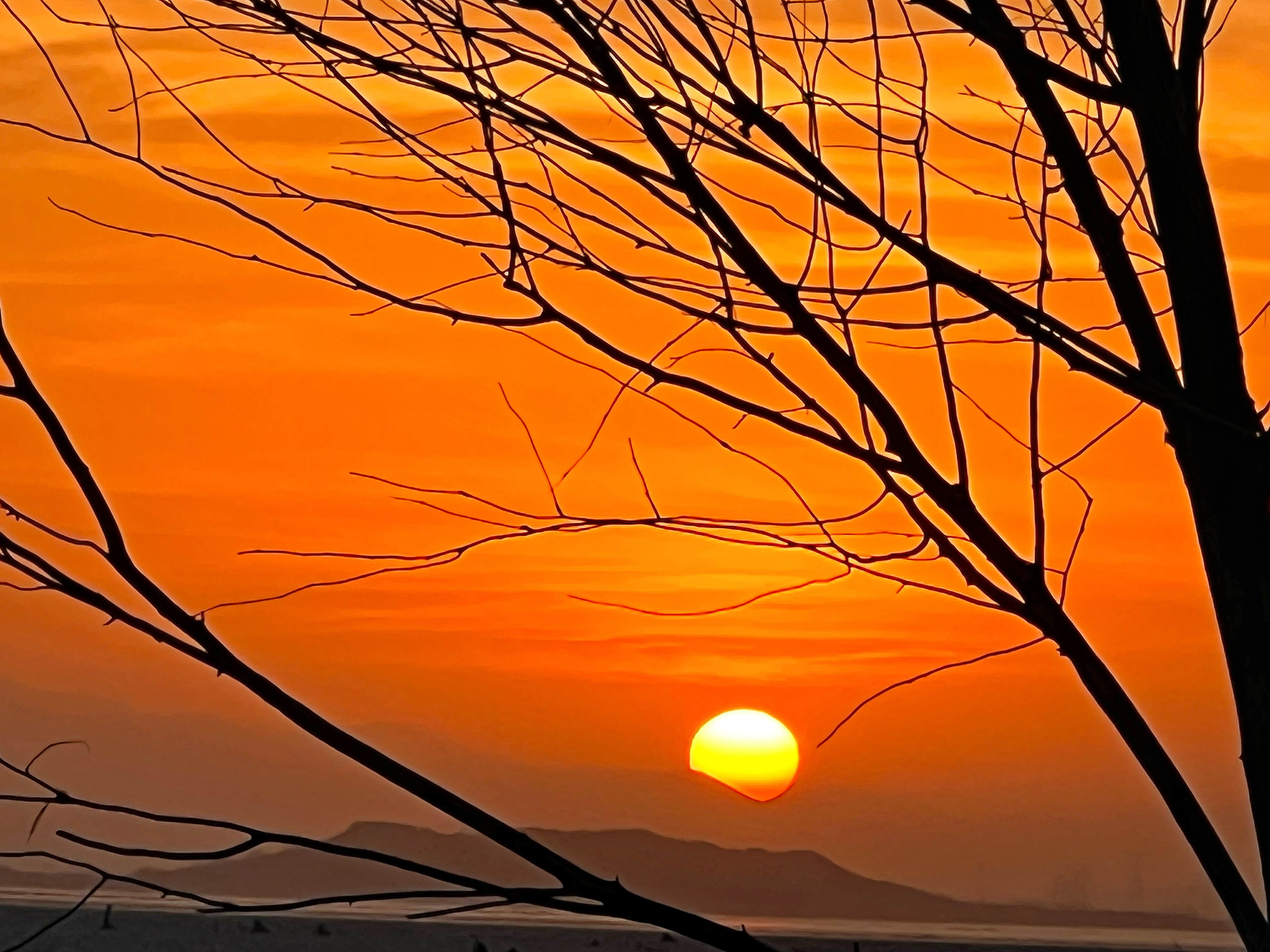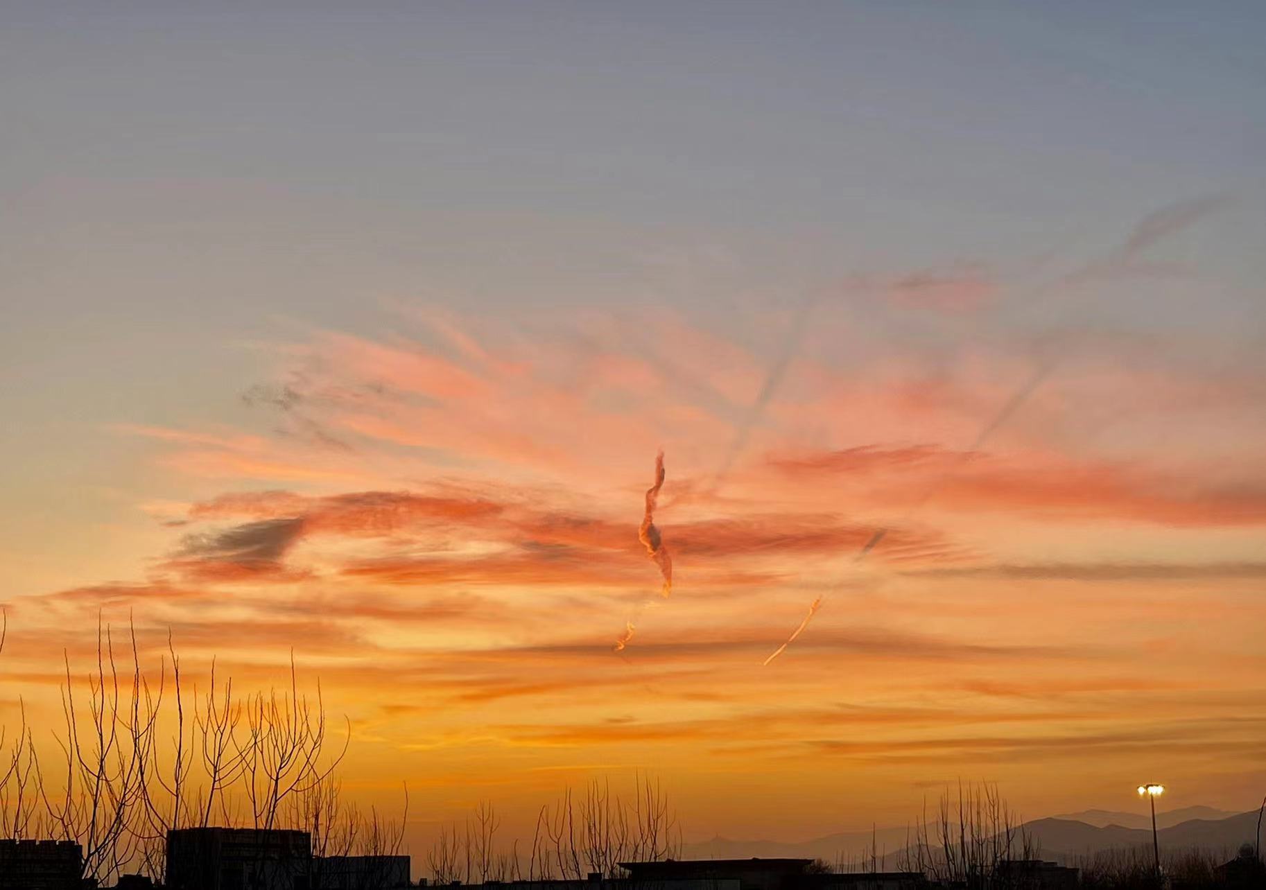 1月7日傍晚,火红的晚霞如凤凰展翅,美不胜收。