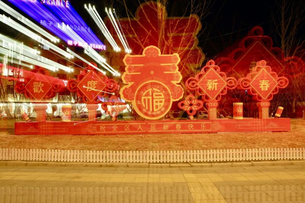 今年春节景观布置工作以“扬帆起航乘势上,福满神州启新程”为设计主题,通过春联福字、发光字、灯笼灯饰、夜景照明等多种形式,打造昼夜兼顾的节日景观效果,营造春节节日氛围。