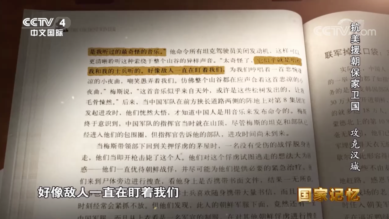在《最寒冷的冬天》一书中,一位美军指挥官回忆:“这是我听过最奇怪的音乐……它似乎就是唱给我和我的士兵听的,好像敌人一直在盯着我们……这首音乐似乎来自天外,或许是这些松树发出的,让我毛骨悚然。”
