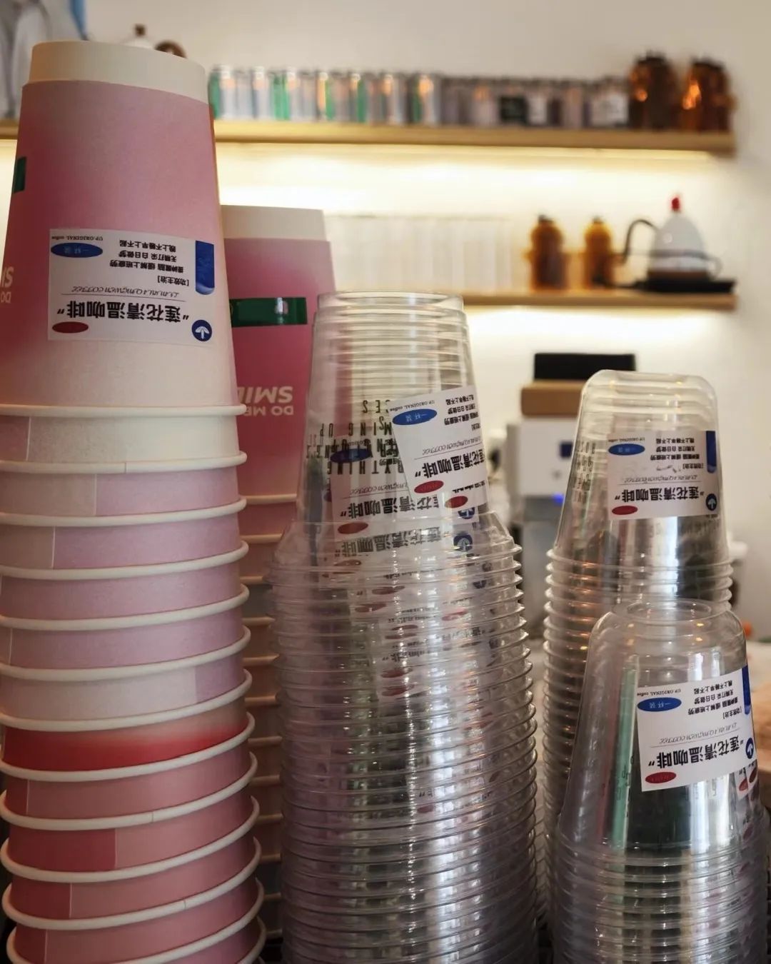 经执法人员现场清点进行检查,该店贴有“莲花清温咖啡”标签纸杯及塑料杯290只,现场有6只绿色中纸杯已贴有饮品标签,准备盛放相应的饮品并对外销售。现场另查见还未使用的“莲花清温咖啡”标签1058个。执法人员现场责令该店停止使用上述杯子,并且销毁还未使用的“莲花清温咖啡”标签。