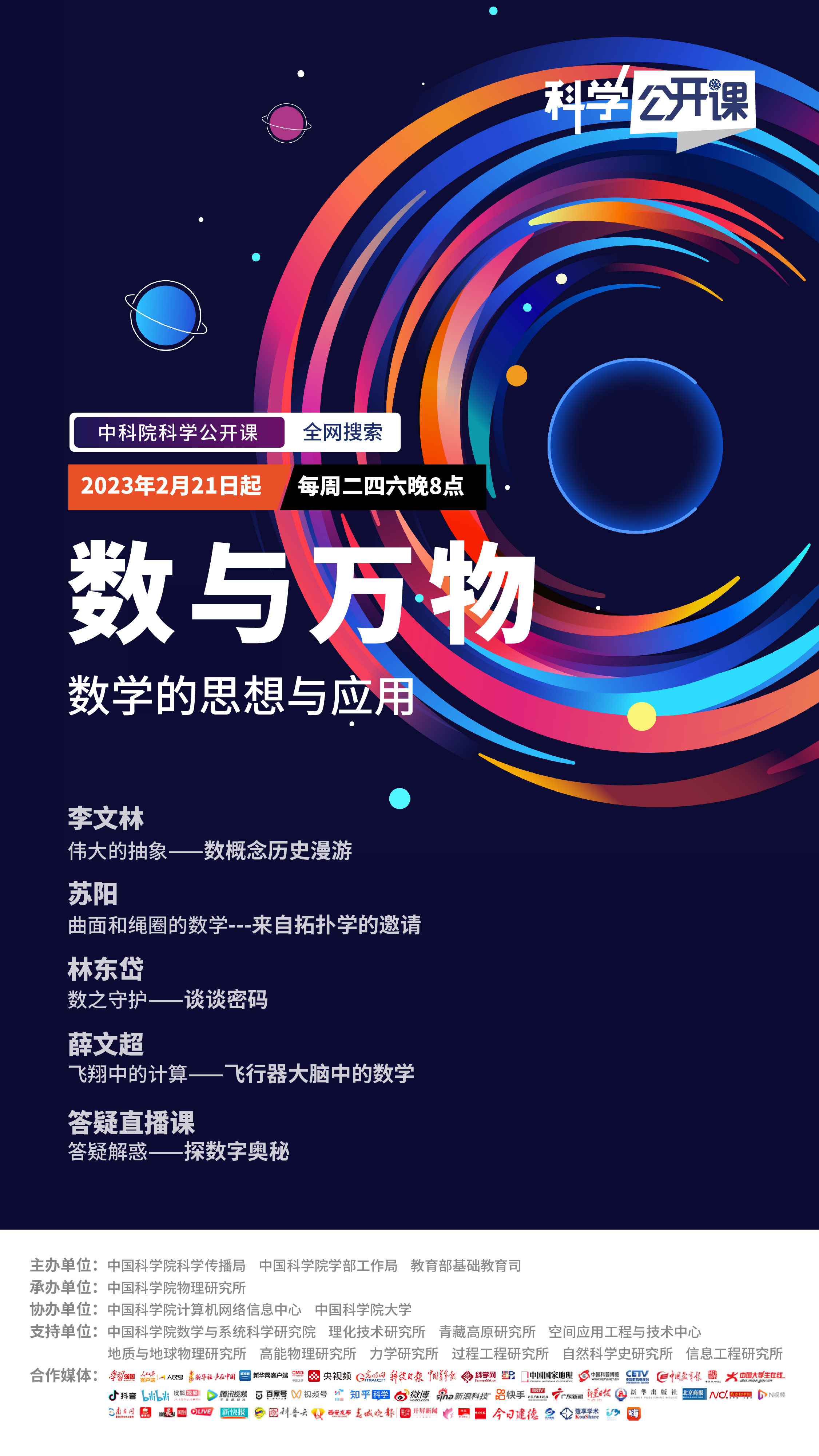 《科学公开课》是以满足中小学生的科普需求为宗旨,在寒暑假期间为青少年联合打造的一档纯公益、全开放的科学教育系列课程。本季课程在内容上紧跟前沿科学进展,紧贴社会热点与生活实际,设置“绿色生活—化学是带来美好的科学”“缤纷世界—光与视觉的科学”“大地探秘—地球演化中的科学”“数与万物—数学的思想与应用”“空天翱翔—航空航天中的科技”共5个主题系列课程。