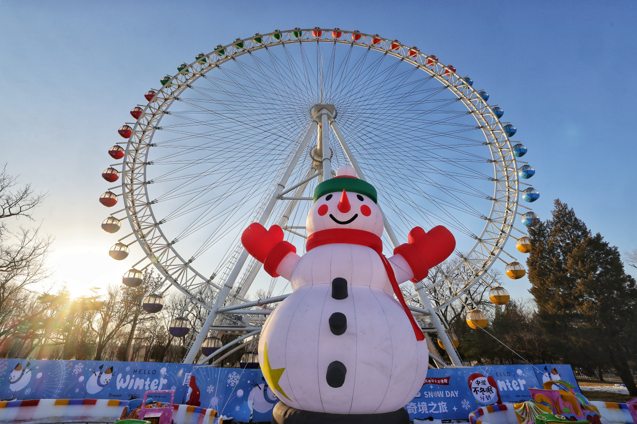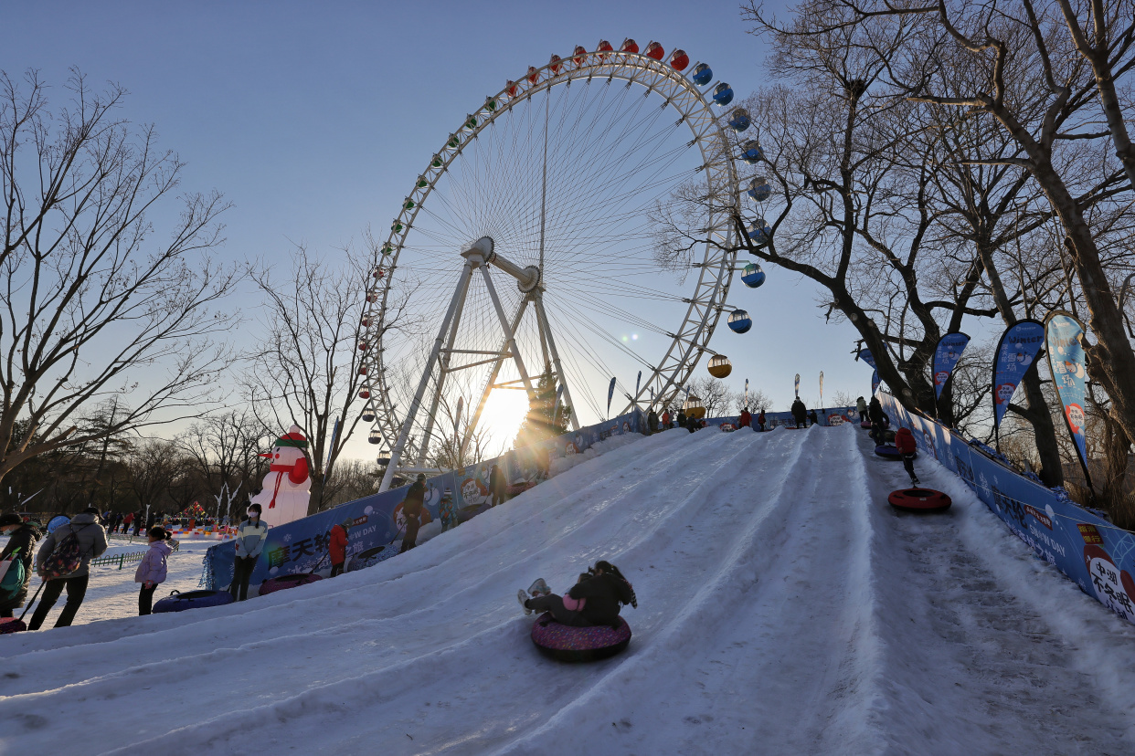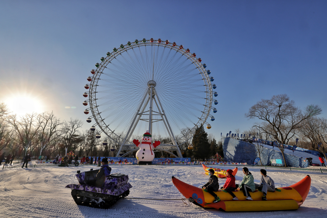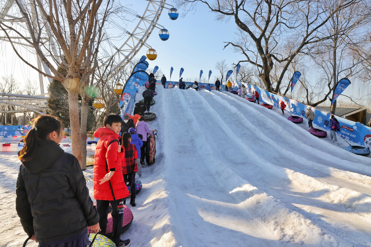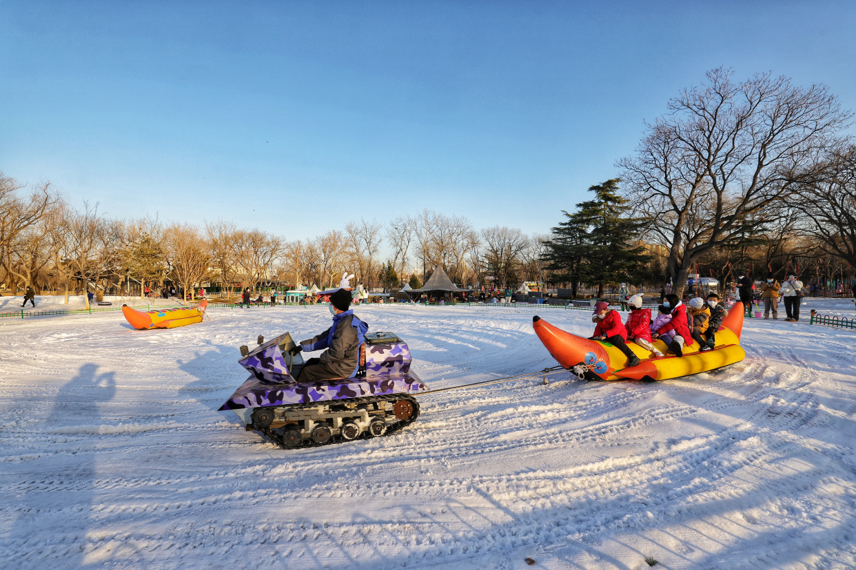 龙潭中湖公园摩天轮冰雪奇境之旅日前开放,为市民送来冬日的专属快乐。在巨型摩天轮、大雪人、LOVE兔的掩映下,雪上大滑梯、雪地转转、香蕉船、冰上碰碰车等丰富多彩的项目,让大朋友小朋友们在赏冰嬉雪间尽享冰雪之趣。