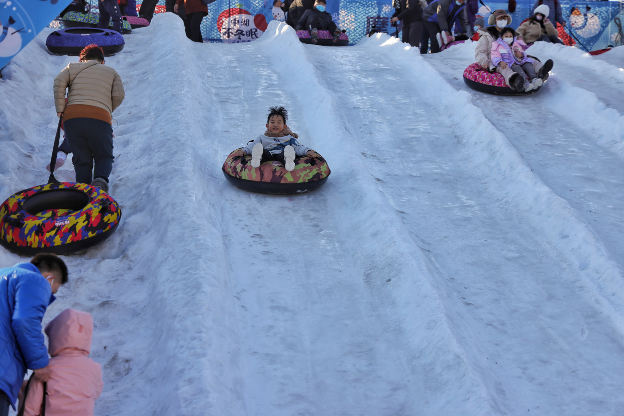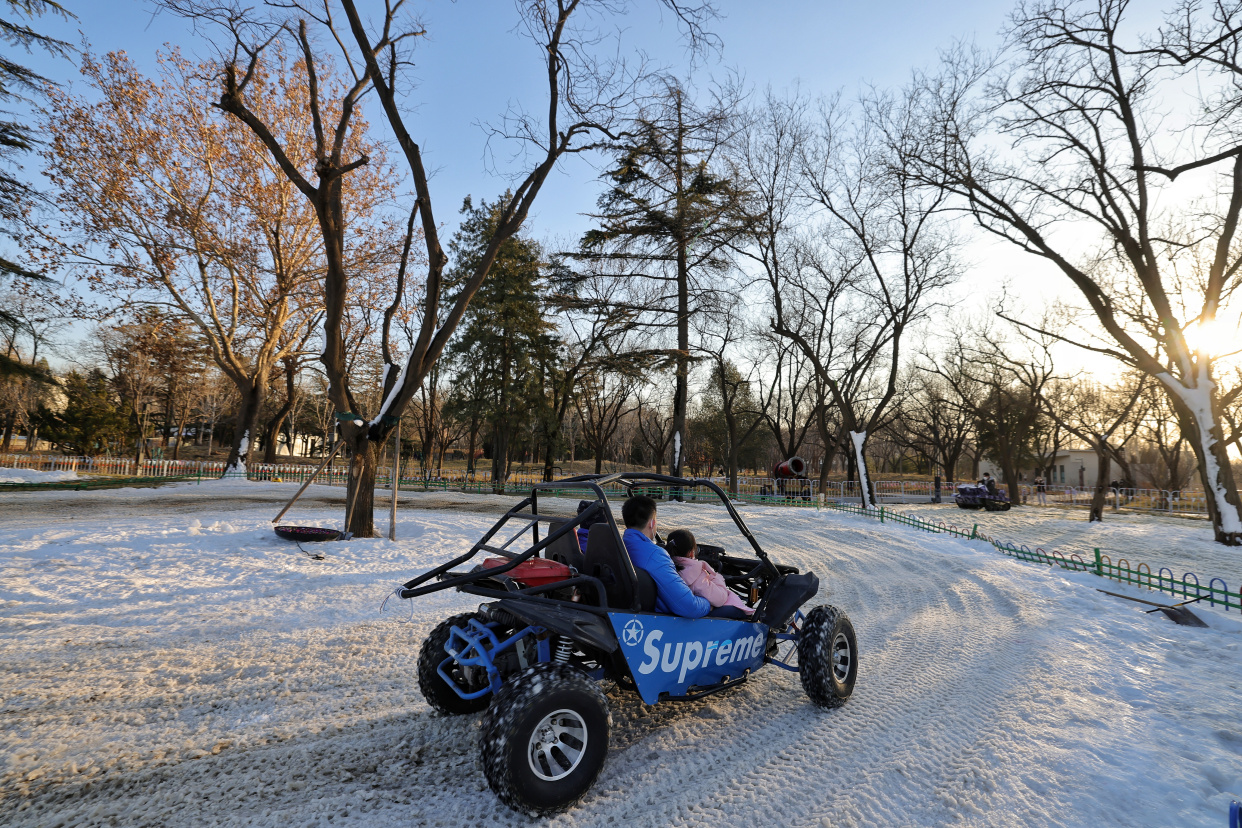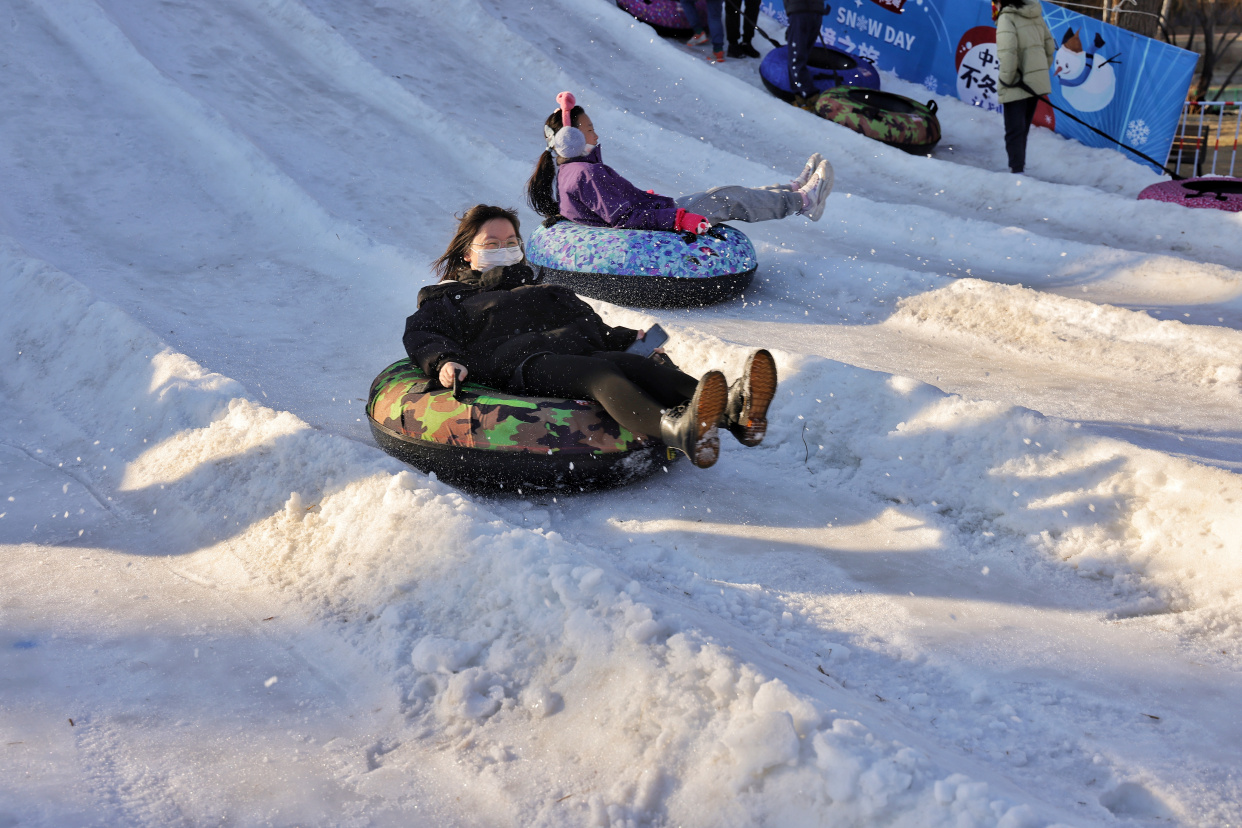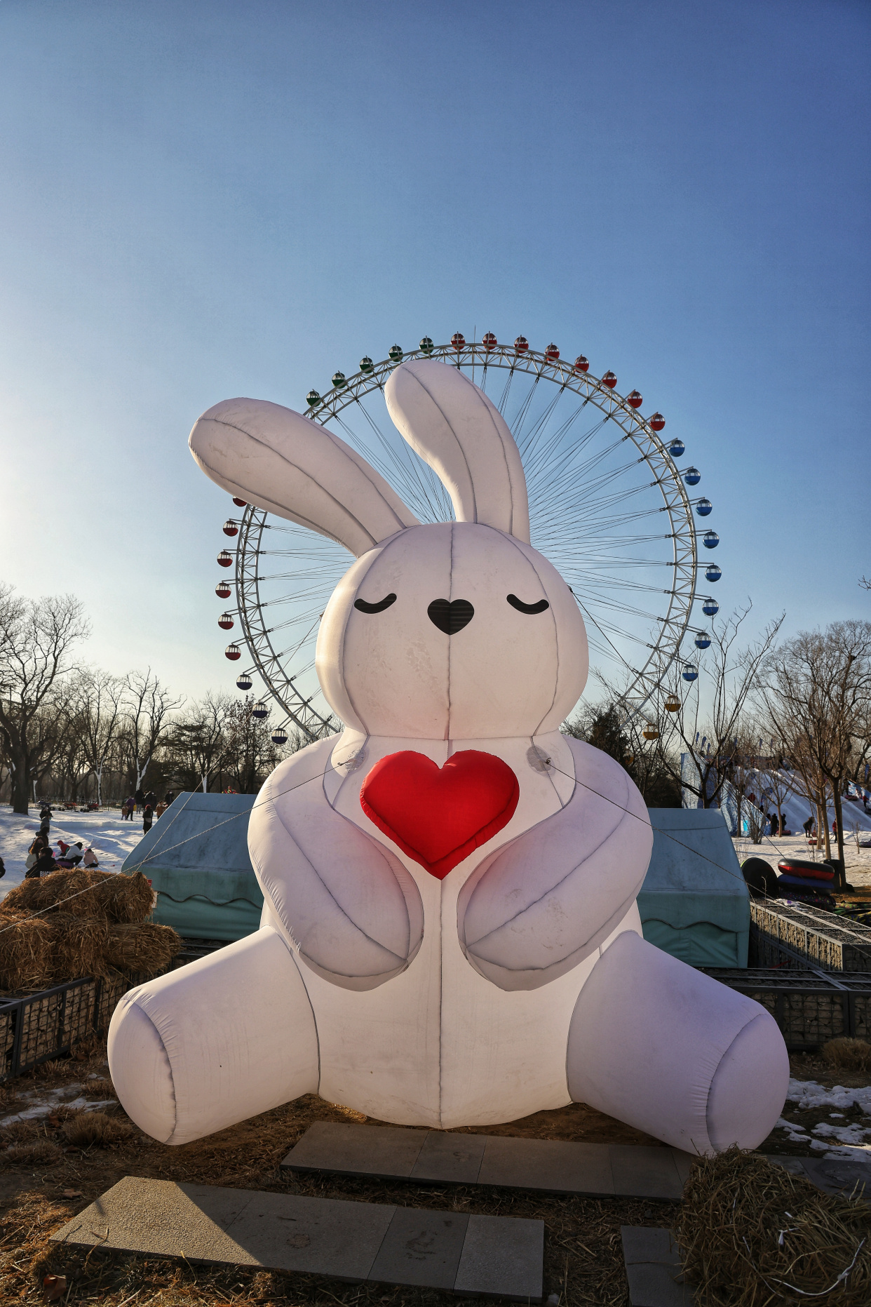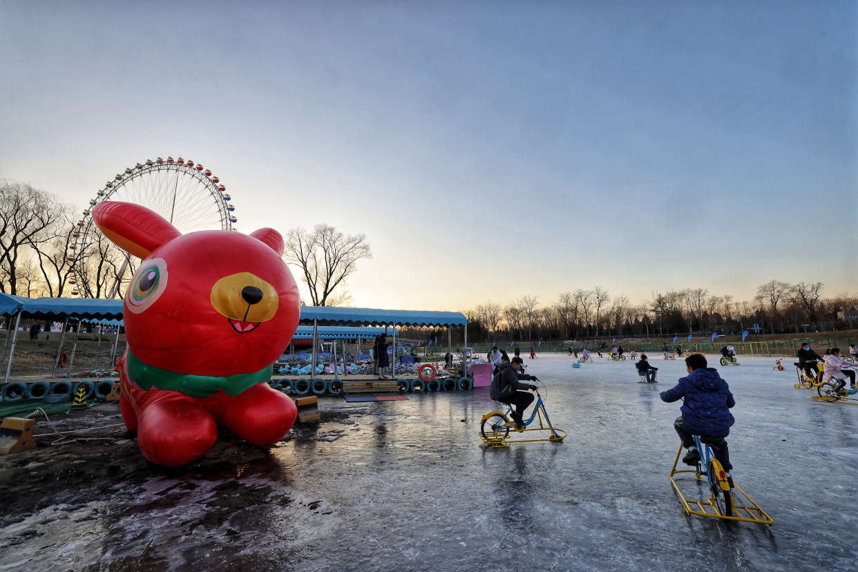 龙潭中湖公园摩天轮冰雪奇境之旅日前开放,为市民送来冬日的专属快乐。在巨型摩天轮、大雪人、LOVE兔的掩映下,雪上大滑梯、雪地转转、香蕉船、冰上碰碰车等丰富多彩的项目,让大朋友小朋友们在赏冰嬉雪间尽享冰雪之趣。