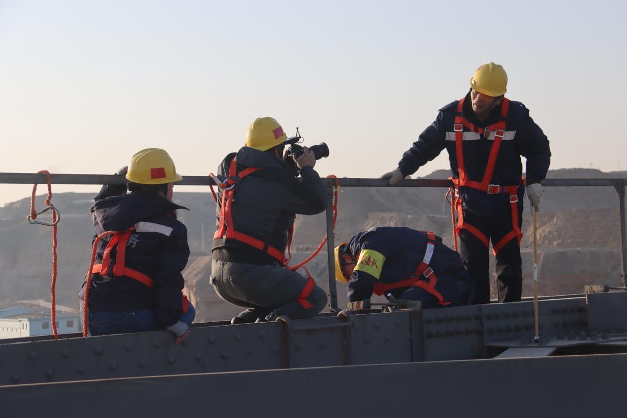 记者跟随工人爬上三十米的高桥顶拍摄
