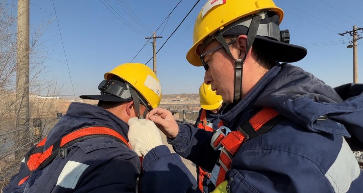 桥隧工们互相检查安全绳和安全帽